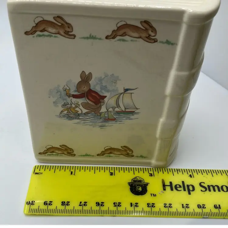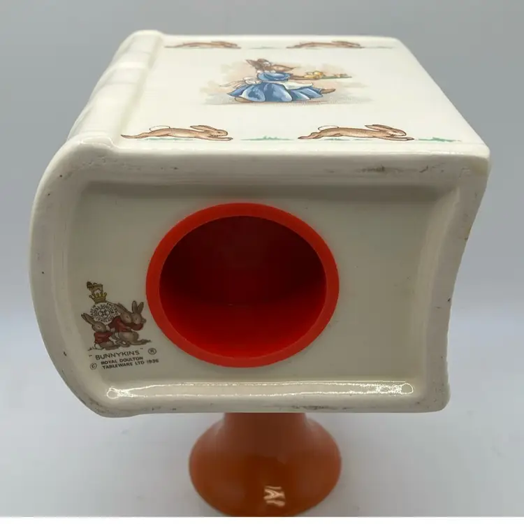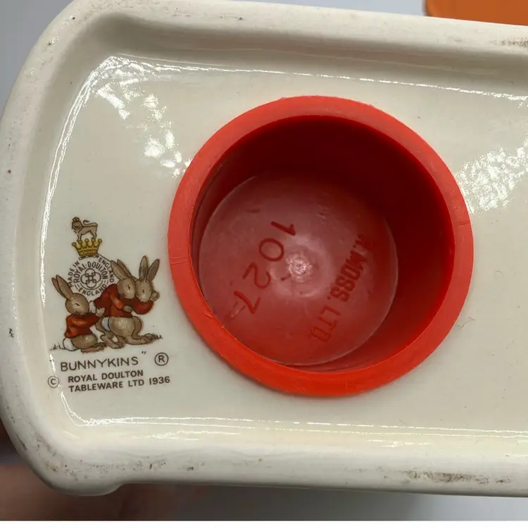 Marked on the bottom. Great graphics and great condition- no chips or cracks. Has stopper.
