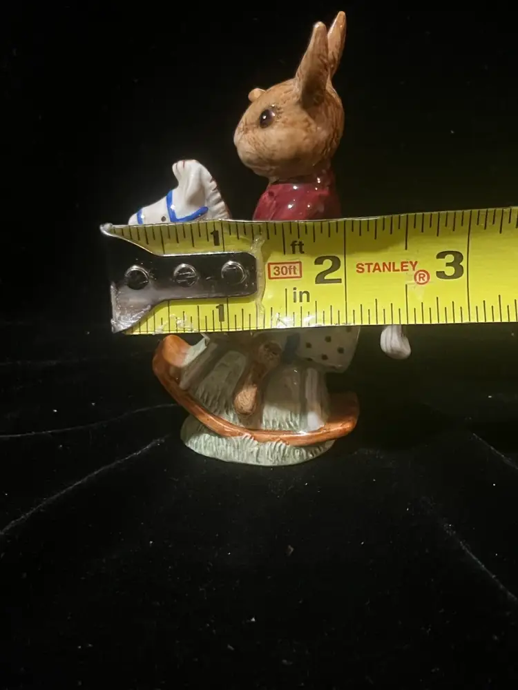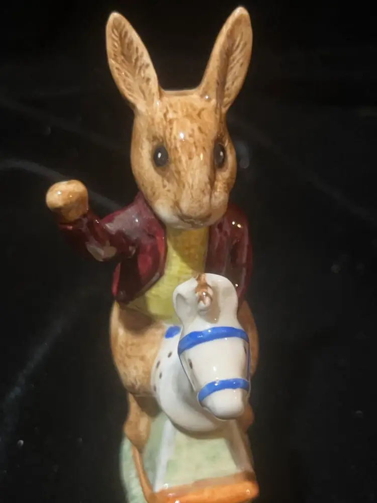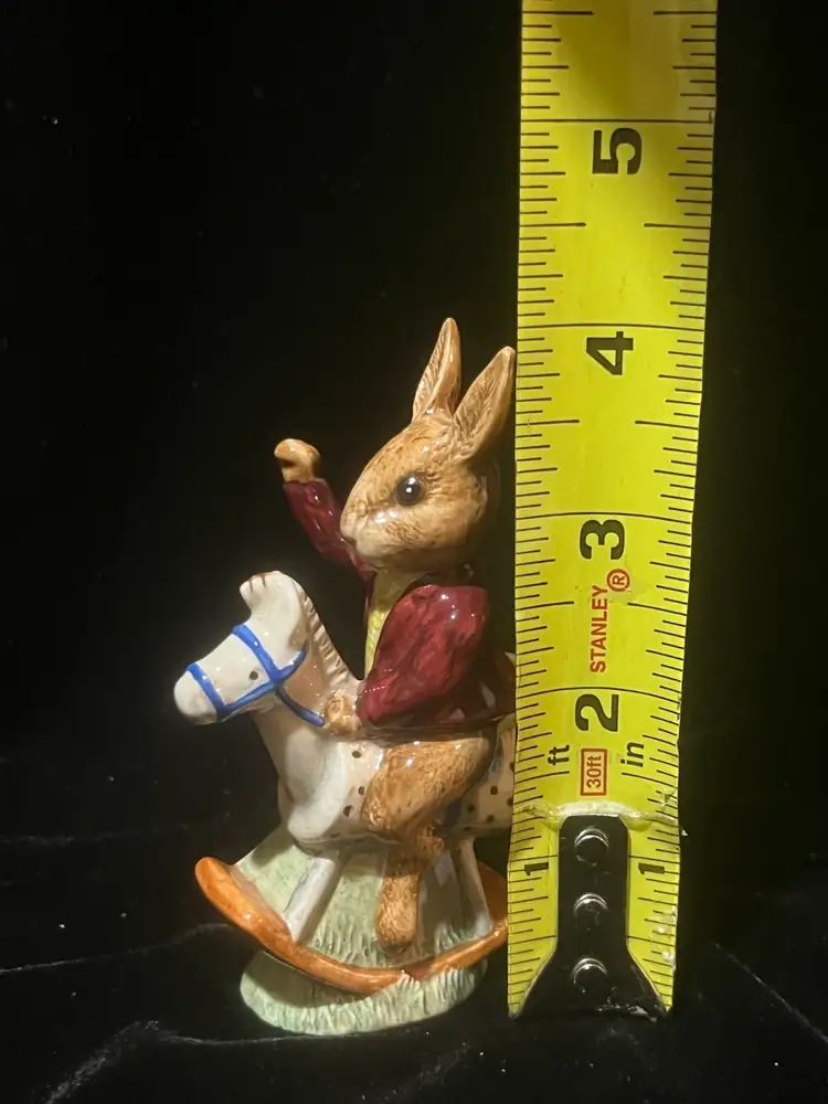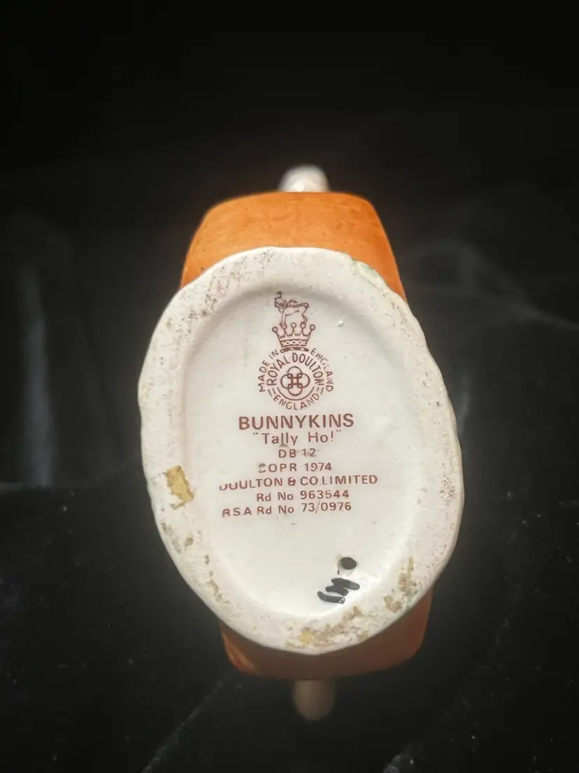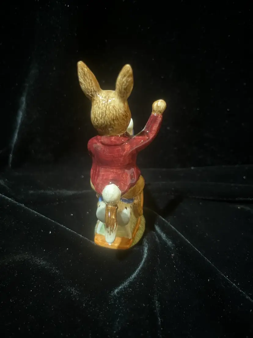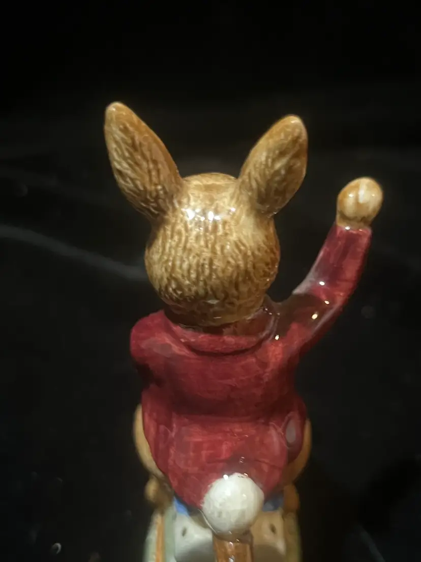 Adorable bunnykins “tally ho” figurine by Royal Doulton 4” tall by 2.5” wide. In lovely condition with no chips or cracks.