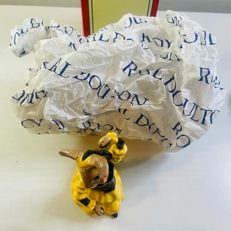 Comes in the original box and with the original paper. She measures 4.25” tall