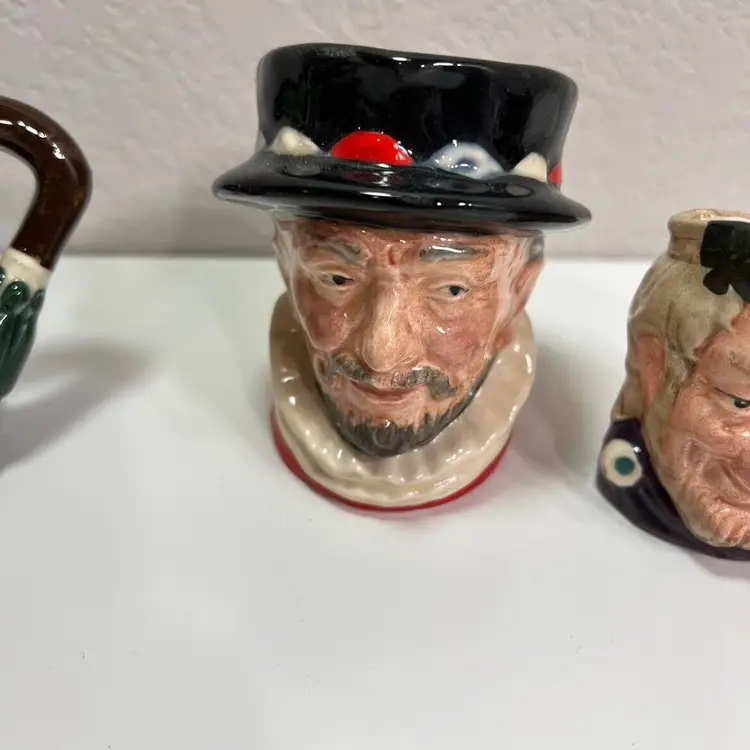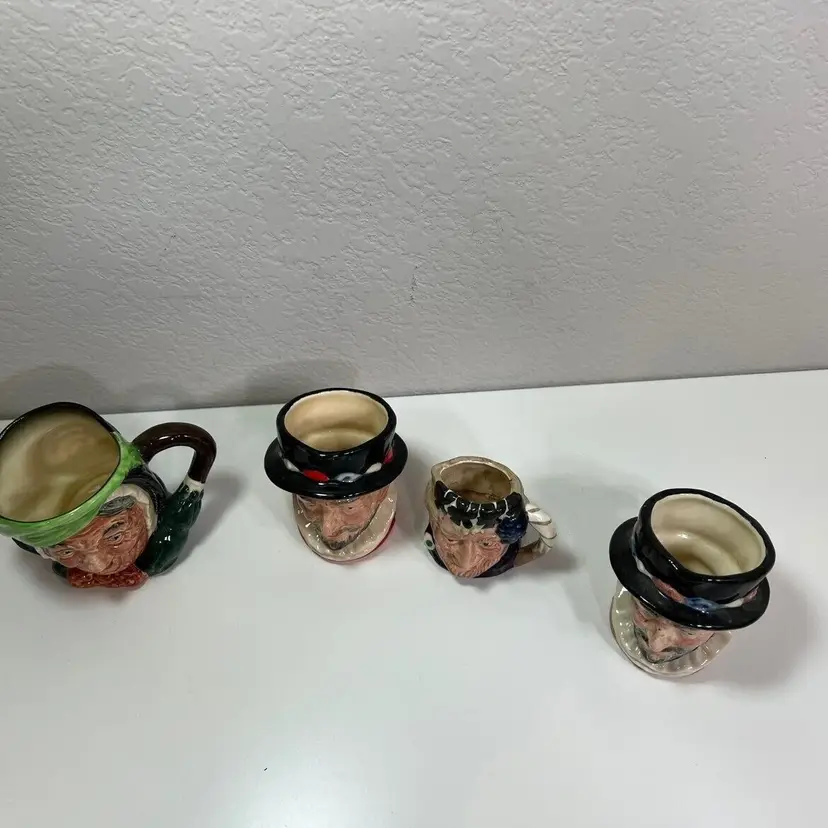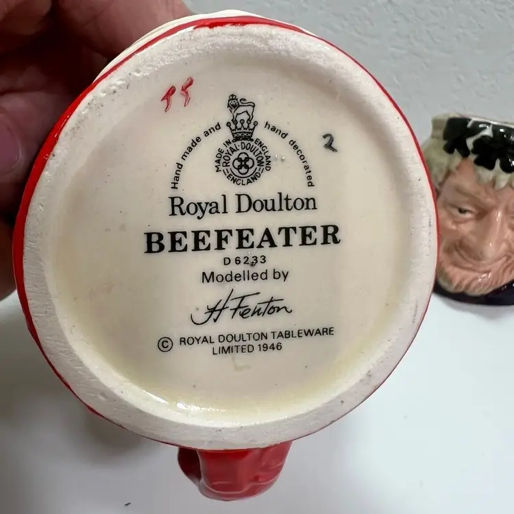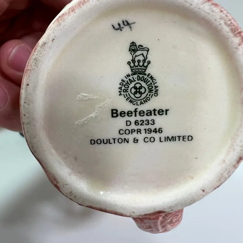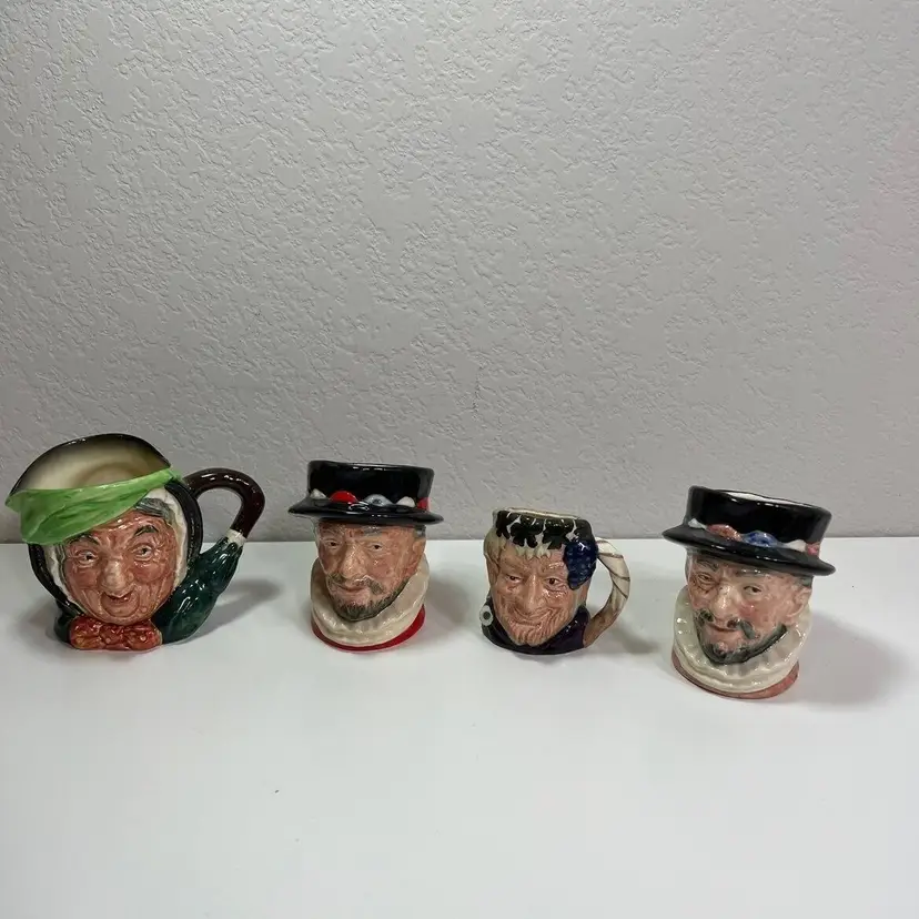 Features: Decorated, Limited Edition, With Handle Department: Unisex Adults Time Period Manufactured: 1940-1949 Production Technique: Pottery Item Height: 4 in Number of Items in Set: Four-Piece Vintage: Yes Country/Region of Manufacture: United Kingdom Origin: England Material: Ceramic Year Manufactured: 1946 Brand: Royal Doulton Color: Beige Signed: Yes Original/Licensed Reproduction: Original Backstamp: Printed Type: Mug