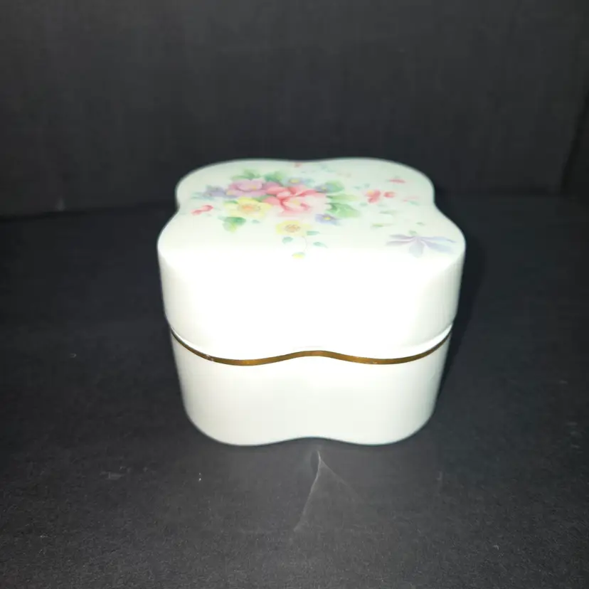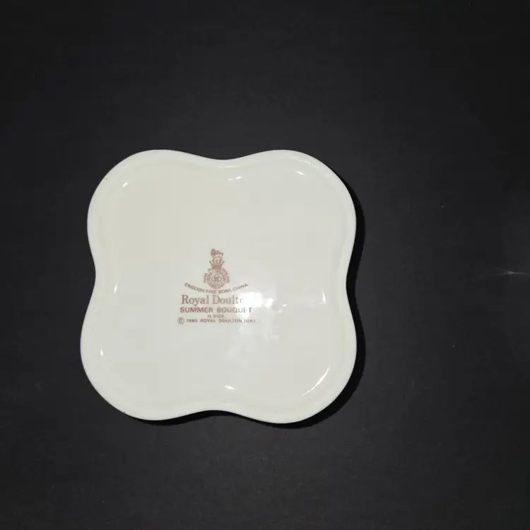 Pretty Royal Doulton trinket box dated 1985. Base has gold trim. Design entitled "Summer Bouquet".