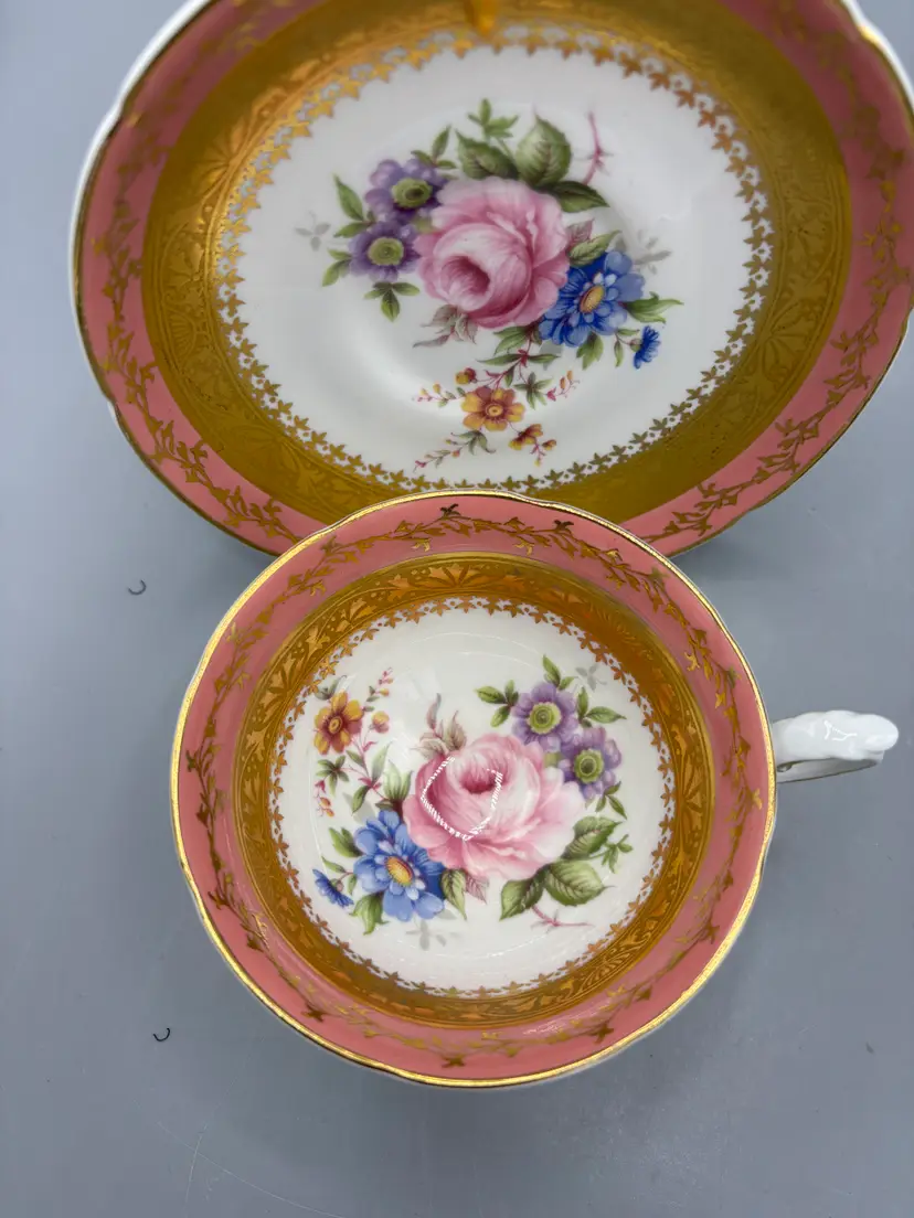 Elegant Royal Grafton fine bone china tea cup and saucer, a timeless addition to any tea service. The cup measures 4 1/4" in diameter by 2 1/4" in height, while the saucer spans 5 1/2" across. Crafted from premium fine bone china, this set combines durability with refined sophistication, perfect for daily enjoyment or special occasions.