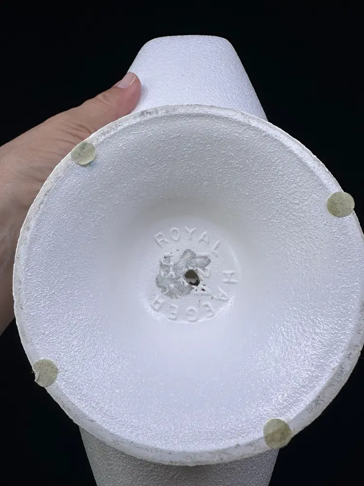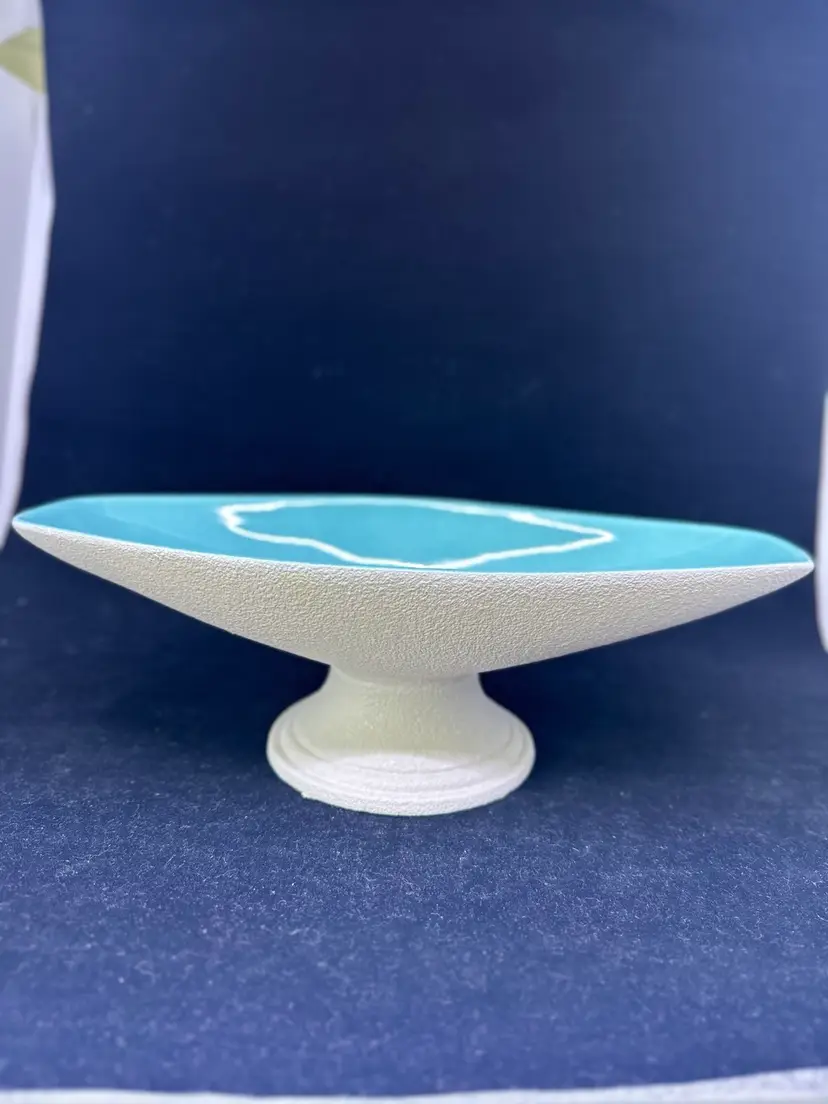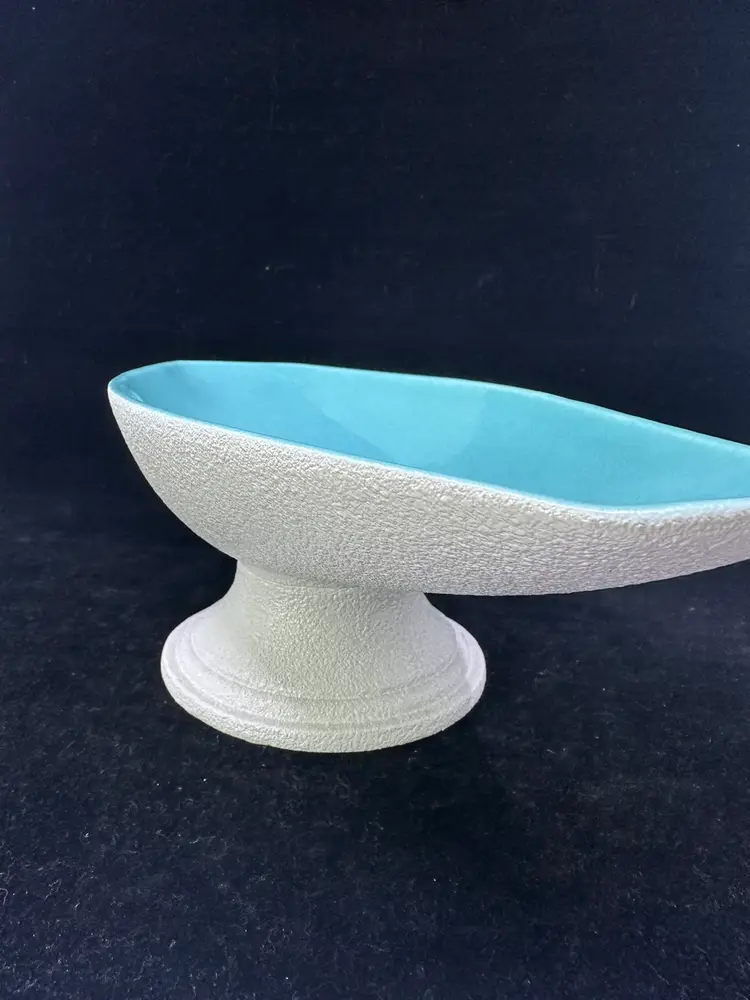 This beautiful Royal Haeger Pedestal Centerpiece Console Bowl is a stunning addition to any decor. The intricate design of white and blue glaze creates a unique and eye-catching piece. Perfect for use as a decorative centerpiece or for displaying fruit or other items, this bowl is sure to impress. The Brand of this bowl is White, Type is Centerpiece Bowl, Color is White, and the subject is Bowling. Ideal for Pottery & Glass, Decorative Cookware, Dinnerware & Serveware, and Centerpieces Categories.