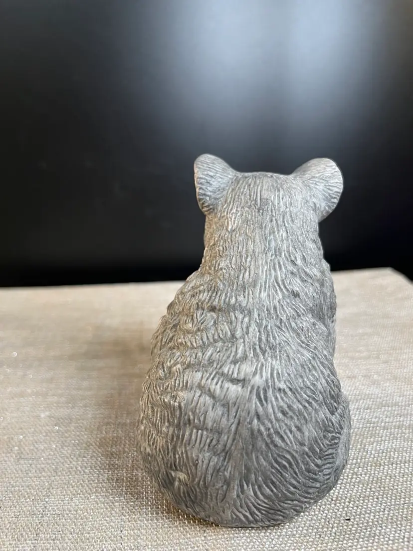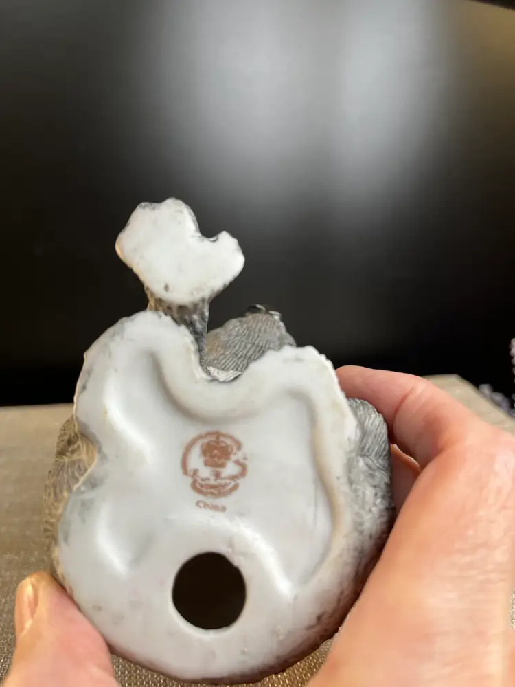 Made in China. Has Makers Mark & China on bottom. He is cute as can be. I would love a live one-but, don't think Trixie would approve. This guy is realistic looking. It is in great vintage condition with NO chips, cracks or call outs. It measures approx 4.5"H, 4"W, 3"Deep, 6.2 Oz