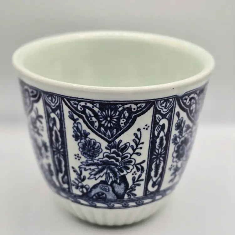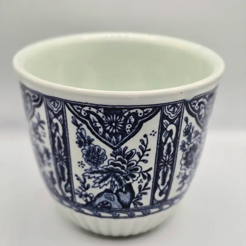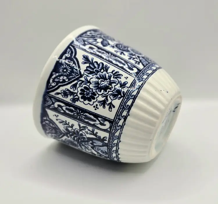 Royal Sphinx Delft planter, a vintage flower pot featuring the classic blue and white Delftware style. 3.25" x 4" number M10. No chips, cracks or crazing. Glaze is a beautiful pale blue/white. Please see photos as they are part of the description. Item will be well wrapped before shipping. These planters were manufactured by Royal Sphinx Maastricht in Holland, often in collaboration with Boch Belgium. Distinctive blue and white floral patterns, often hand-painted on porcelain and ceramic.