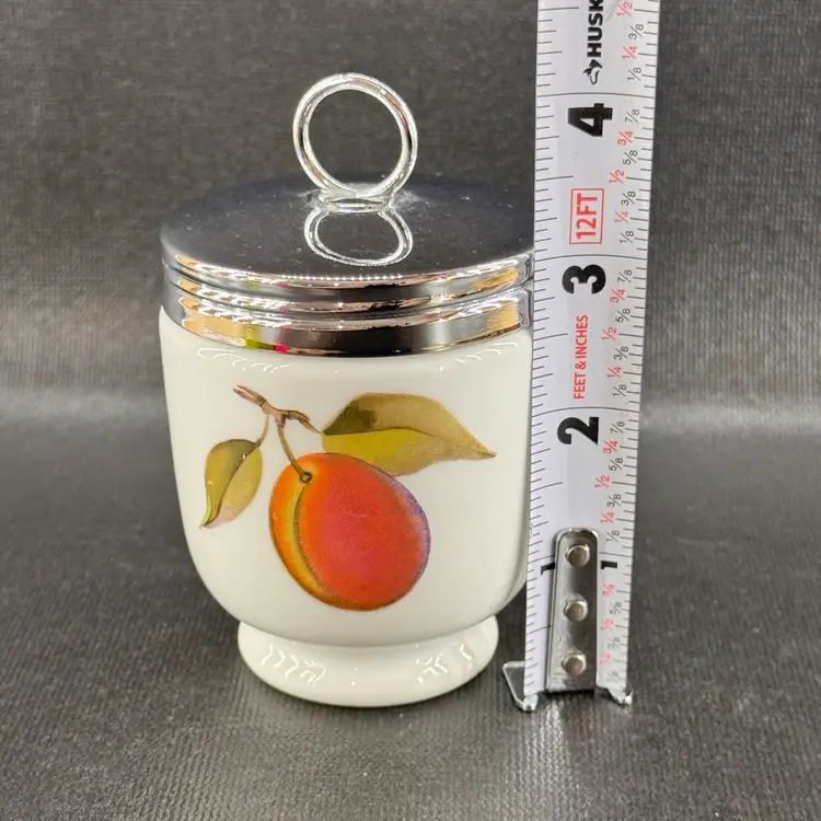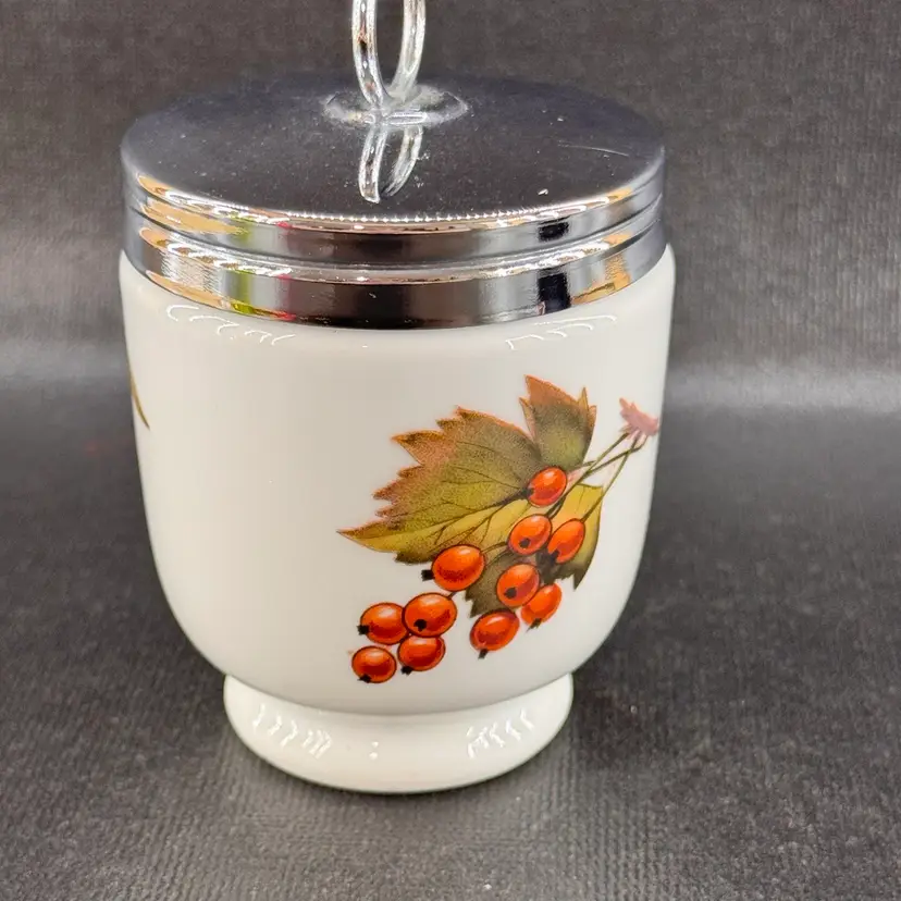 Royal Worcester Evesham Gold Porcelain Egg Coddler w/Chrome Lid Discontinued
