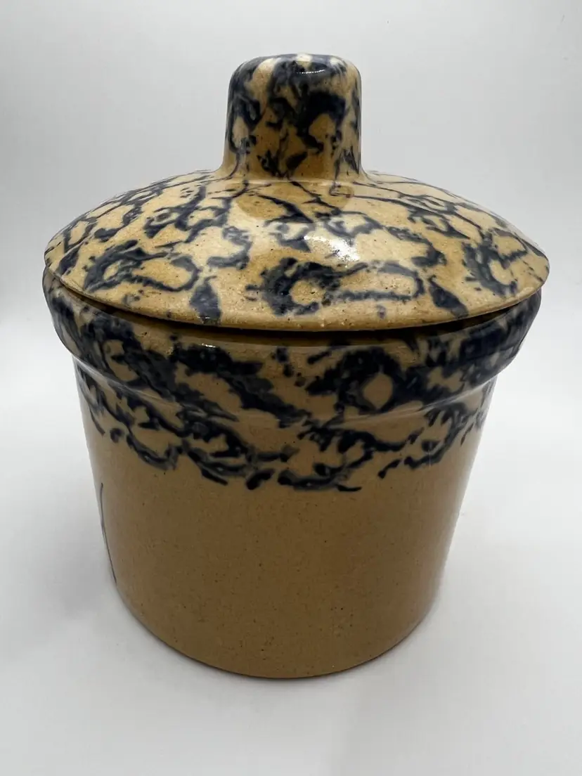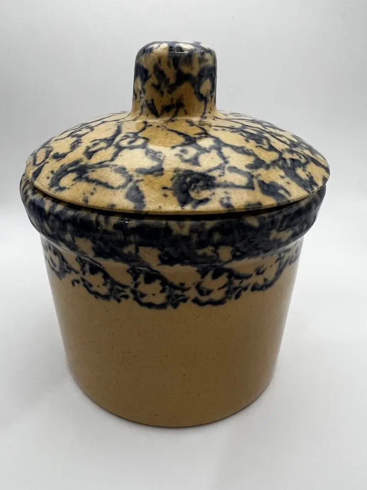 Made of stoneware, this original vintage crock from the RRP Co brand is a great addition to any collection. Its unique style and features, such as the lid and spongeware design, make it a must-have for any fan of vintage/retro kitchenware. Don't miss out on the chance to own this beautiful piece of history.
