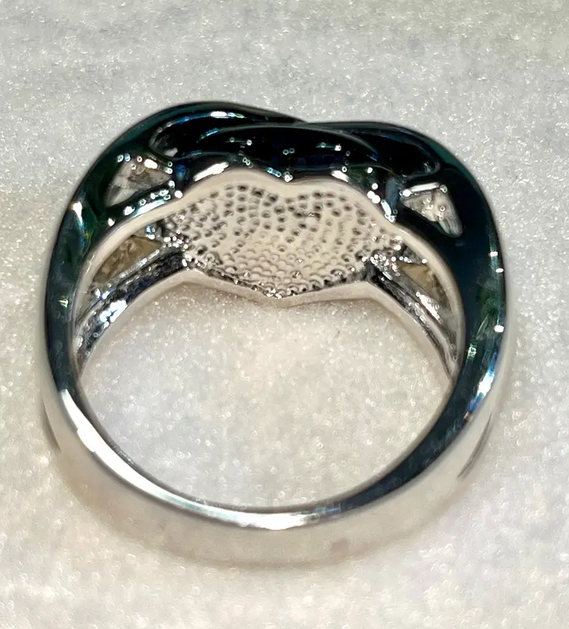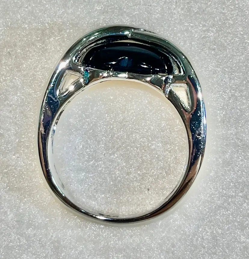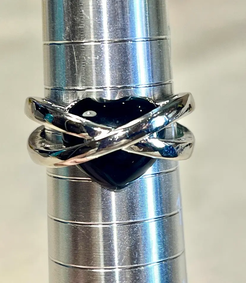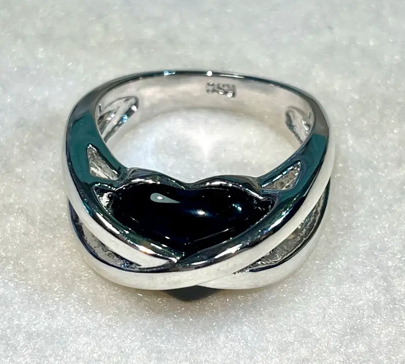 RSC Silver Tone with Black Heart Shaped Gem. Size 10. Costume
