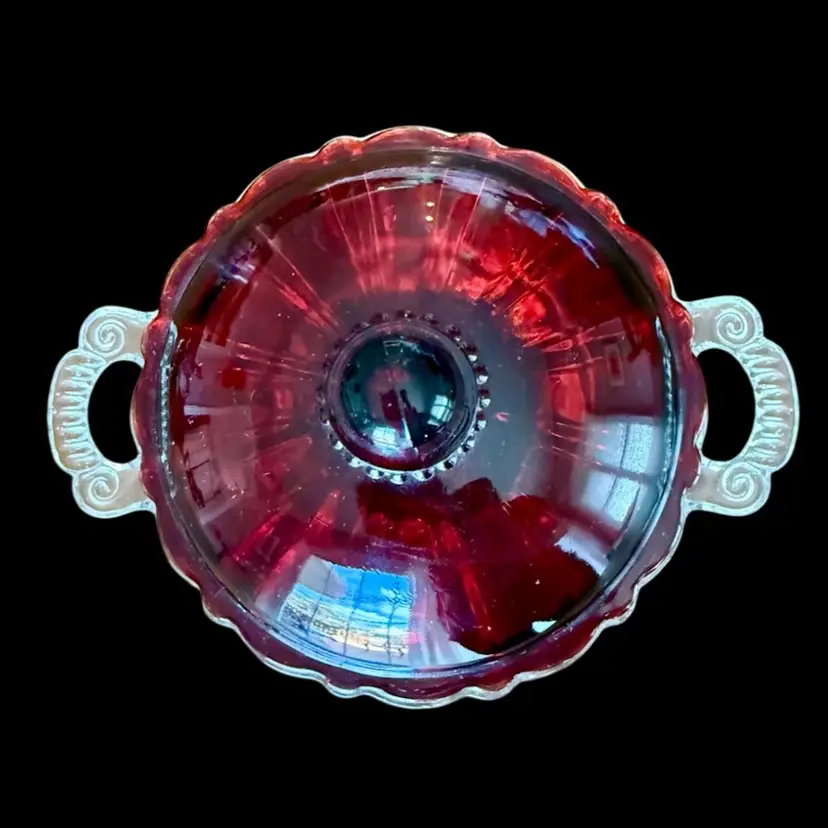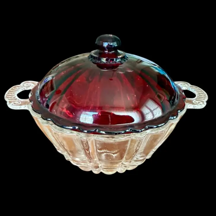 7”x4.25” (including handles and lid). Bowl is 5.5”x2.5”. Not marked.. I’m seeing it listed as Anchor Hocking, but I can’t be sure!