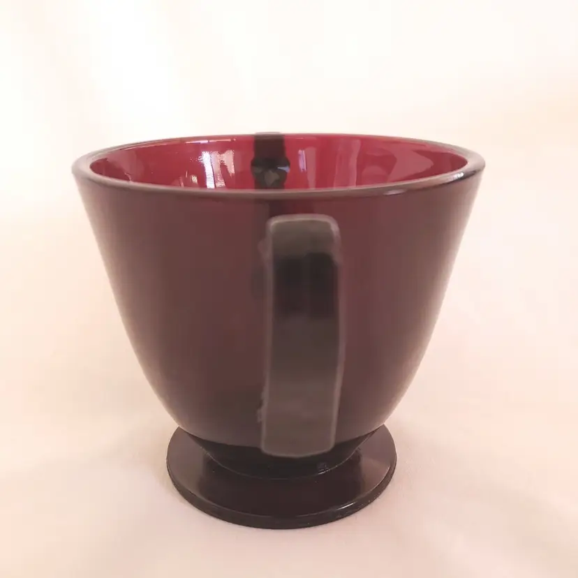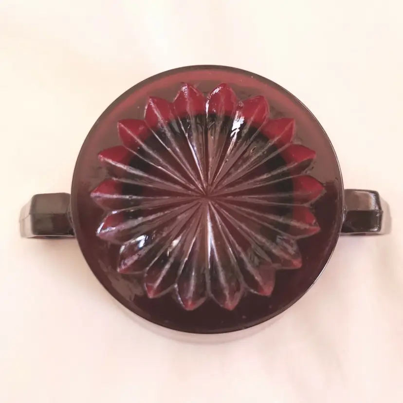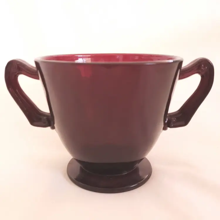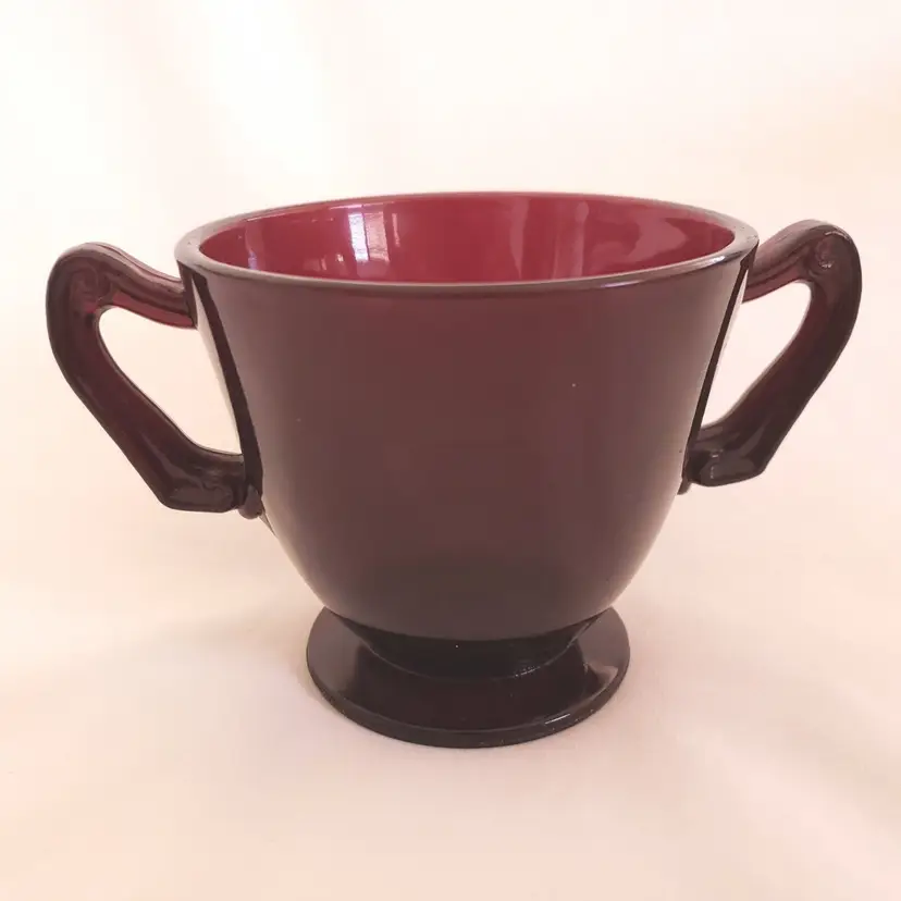 Pattern: Vintage Antique: Yes Shape: Round Occasion: All Occasions Type of Glass: Depression Glass Custom Bundle: No Color: Red Material: Glass Set Includes: Cup Glassmaking Technique: pressed glass Vintage: Yes Brand: Unbranded Type: Sugar Bowl Department: Adults Original/Licensed Reproduction: Original Object Type: Sugar Bowl Style: Mid-Century Modern Original/Reproduction: Vintage Original Production Style: Ruby Glass Production Technique: pressed glass Finish: Glossy Handmade: Yes Vintage Ruby Red Depression Glass Double Handled Open Sugar Bowl - unbranded - footed 3 1/8" tall approximately. Used condition with the only issues I see are fingerprints from handling, water stains, sticker residue, etc. Please view all photos as they are part of the description and please ask questions prior to purchase if possible.
