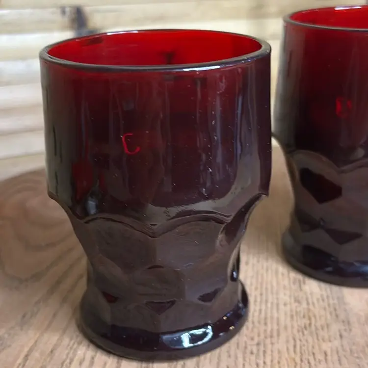 By Anchor Hocking, a pair of deep Ruby Red tumblers