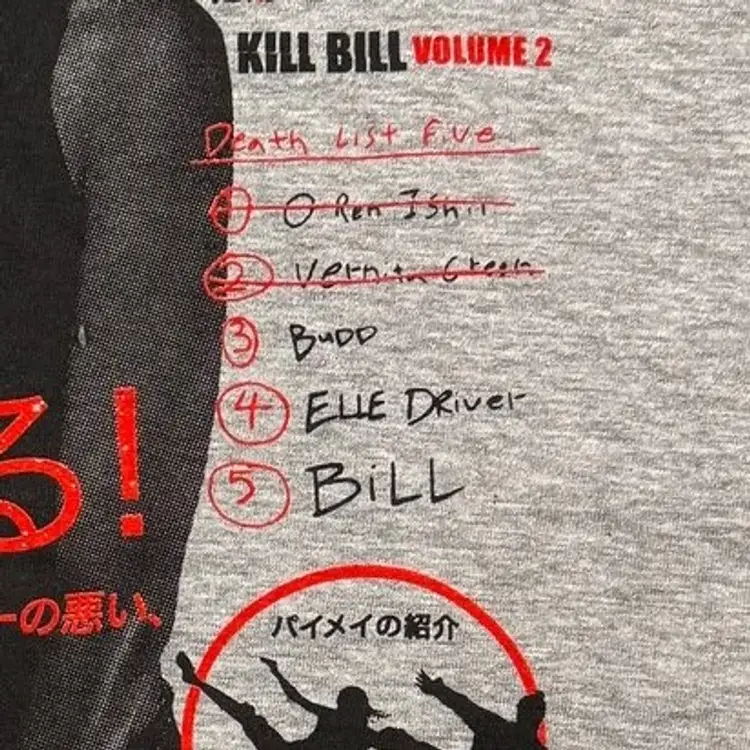 New Beverly exclusive made by Rucking Fotten! Short Sleeve Version Grey The Bride Kill List Variant 100% Cotton $7.95 U.S. Shipping & Handling, $2.00 each additional shirt $20.00 Canada Shipping & Handling (via Fedex)