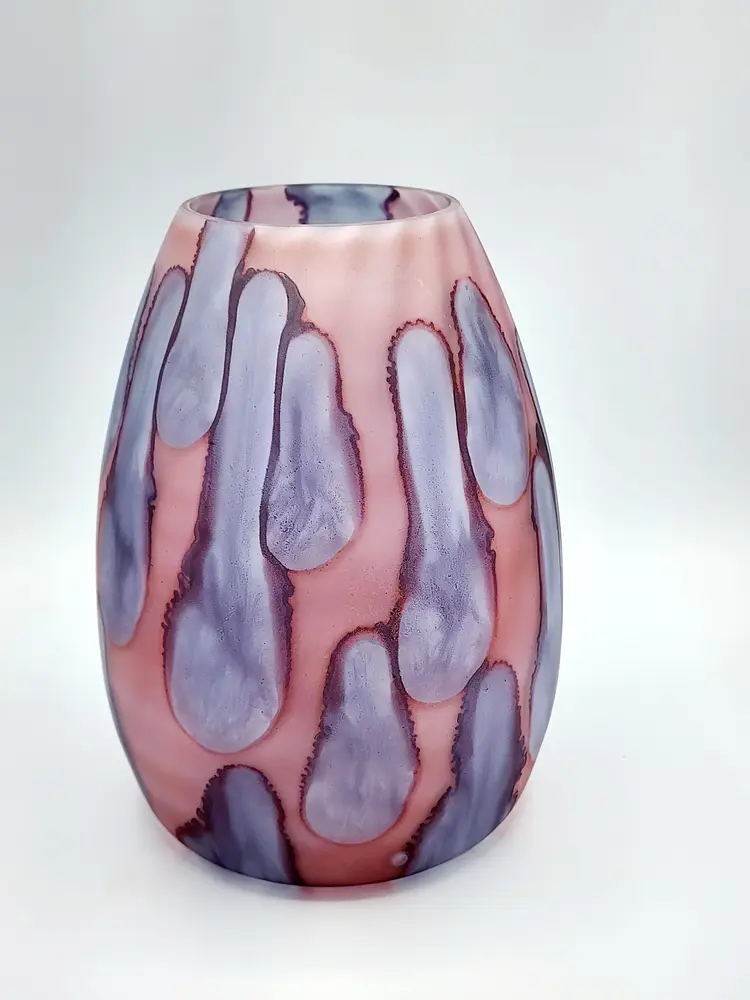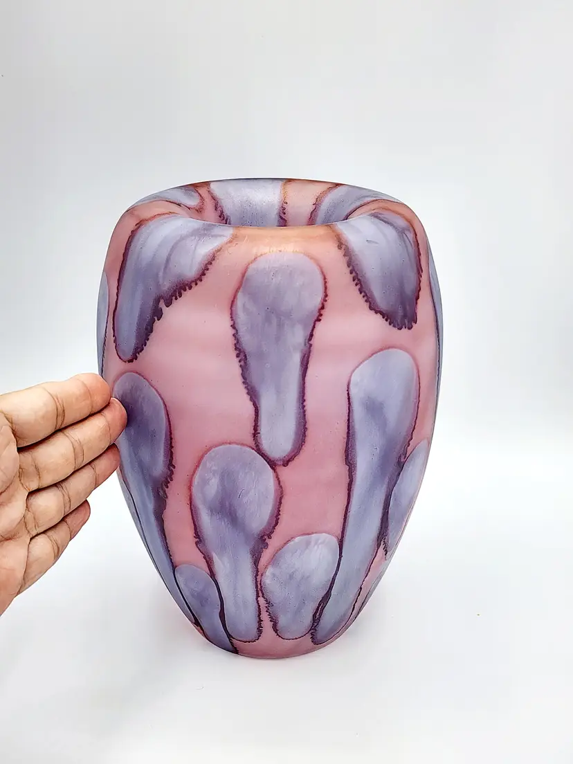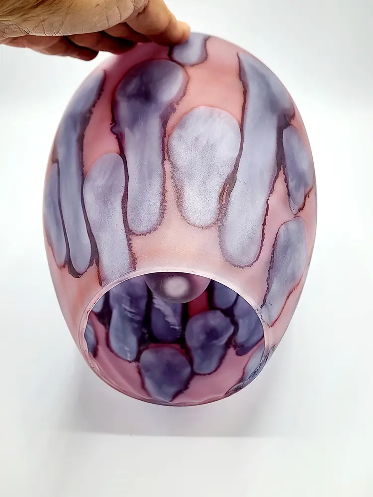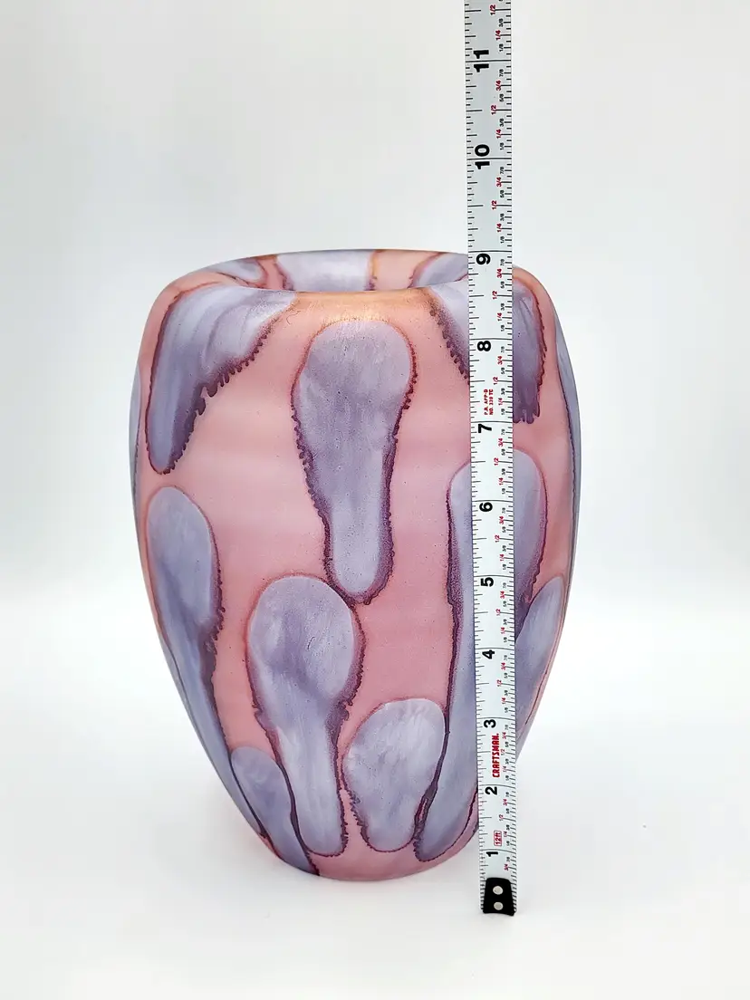Rueven Handblown thin satin glass with applied color. Can be used 2 ways, unmarked, 8 1/2" tall. Condition: very good, light scratches.