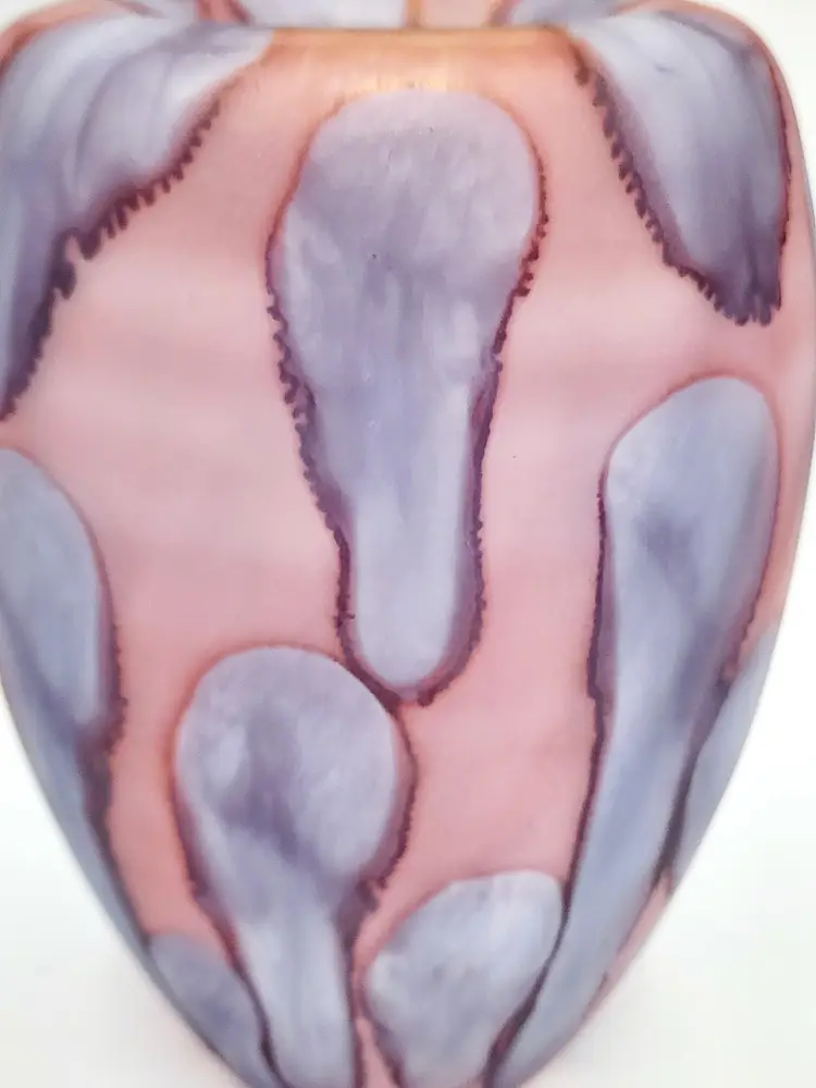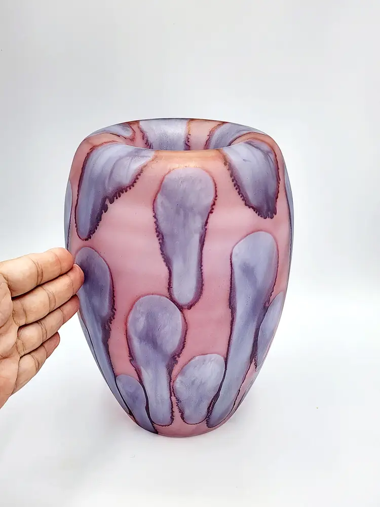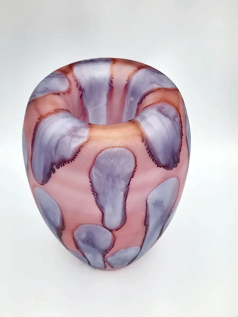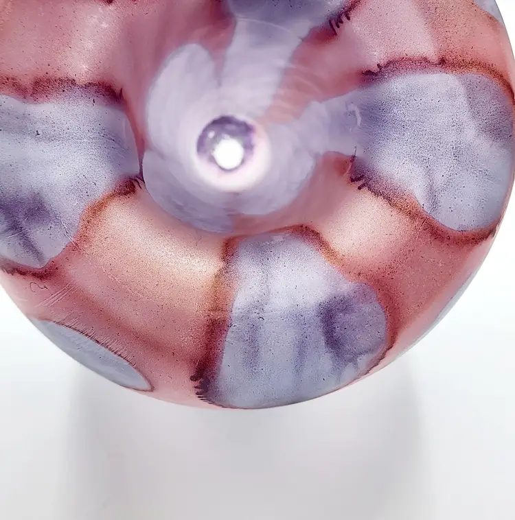 Rueven Handblown thin satin glass with applied color. Can be used 2 ways, unmarked, 8 1/2" tall. Condition: very good, light scratches.