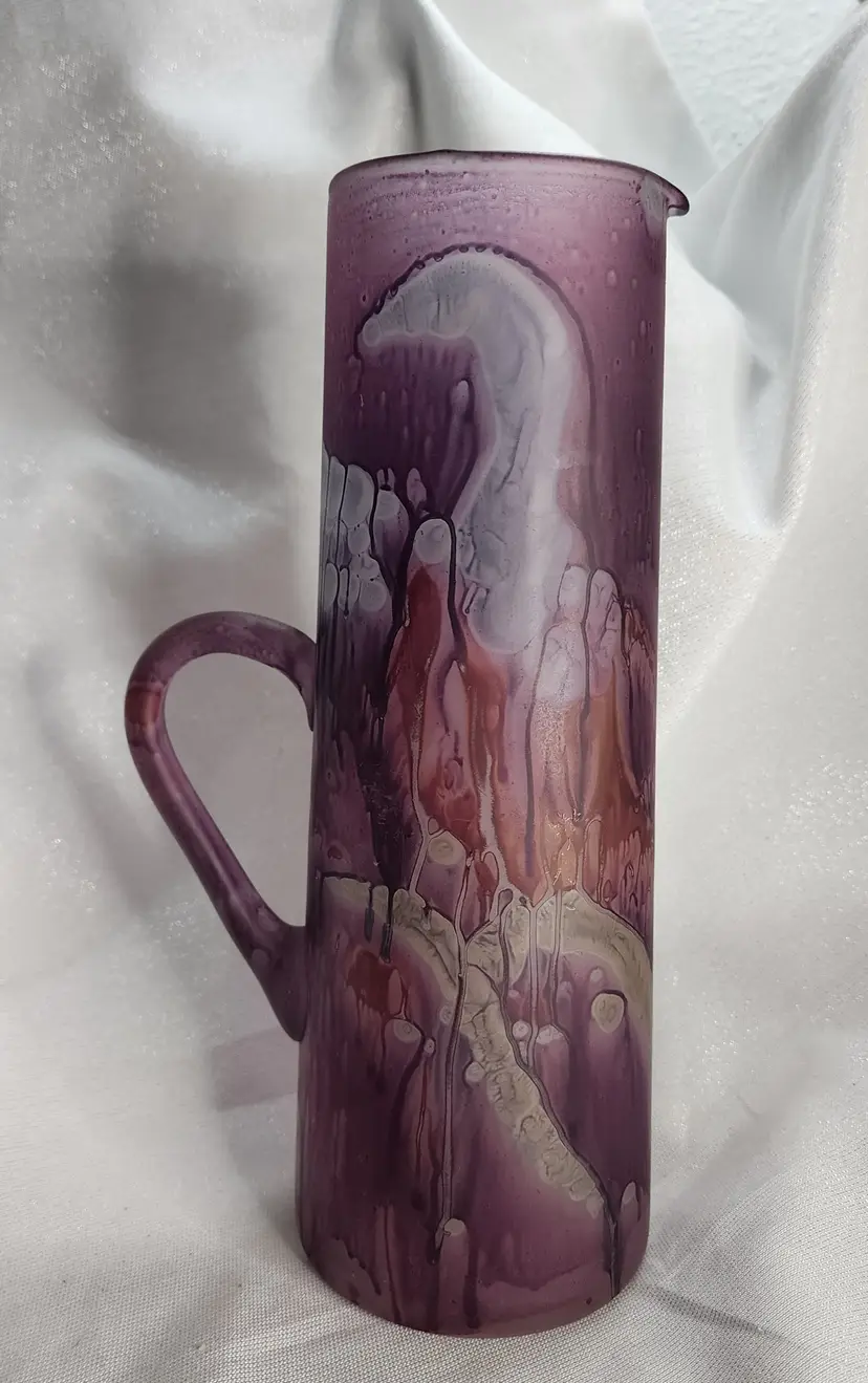 Tall martini / drink pitcher or vase, Rueven BY Nouveau Art Glass.