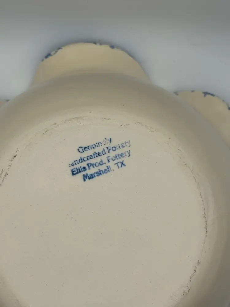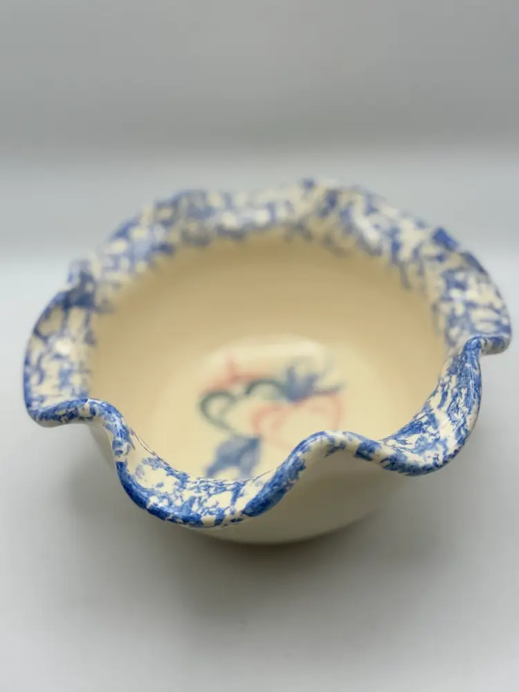 Ruffle Edged Pottery Bowl; Sponge Rim Ellis Prod Pottery Marshall, TX 6.5” Diameter