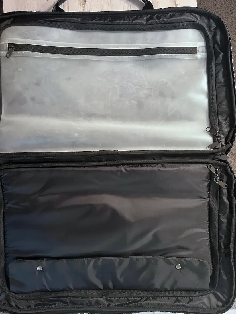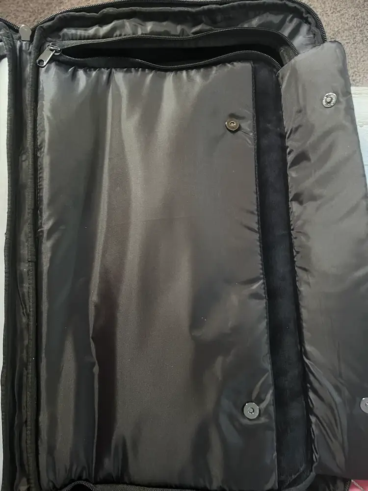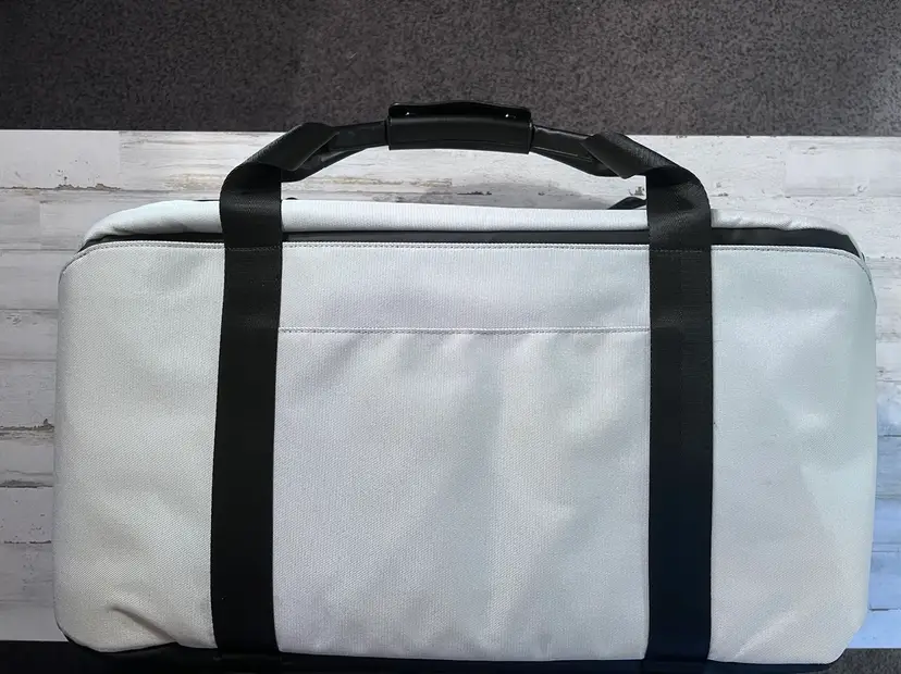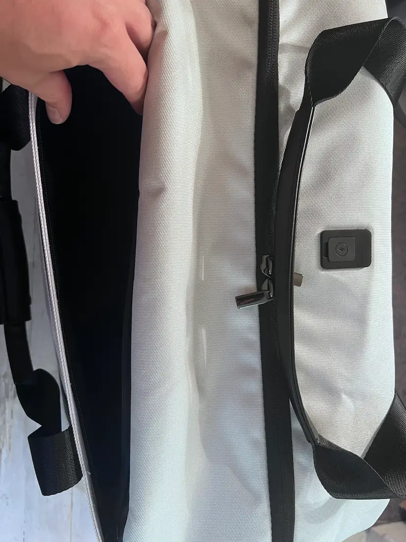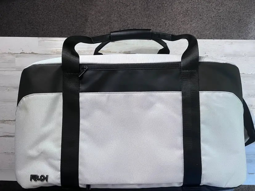 -Luggage pass through (functions as pocket when not unzipped) -Padded and adjustable strap, removable -Felt lined laptop compartment fits up to a 16” -Insulated pocket for hot/cold items -Moisture-resistant pocket for gym clothes, bathing suits, etc. -Exterior charging port, comes with Ruk 10,000mah slim battery pack -Exterior cup holders -Padded and reinforced bottom -Overall capacity of 40L -Used once. Decided I’m a backpack guy -Retails new for $149
