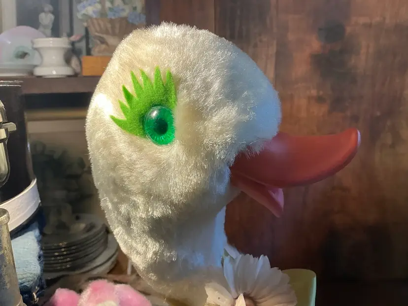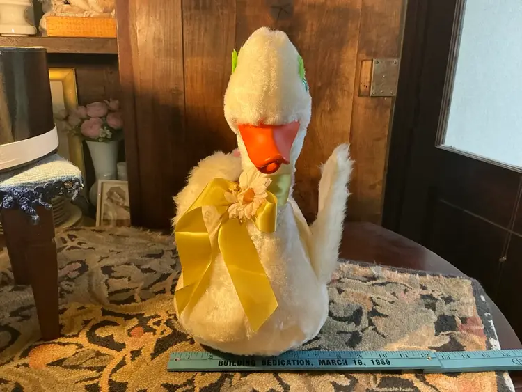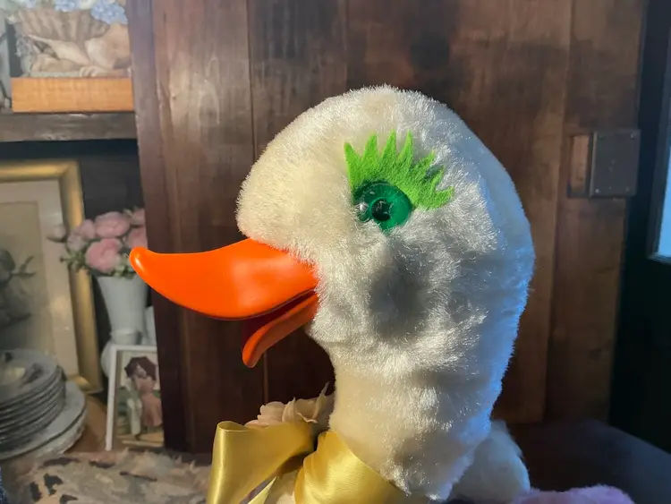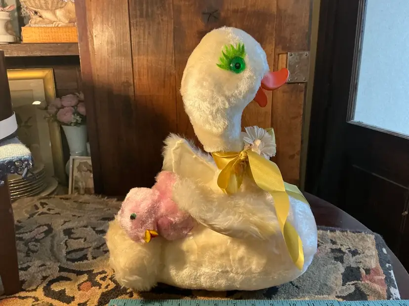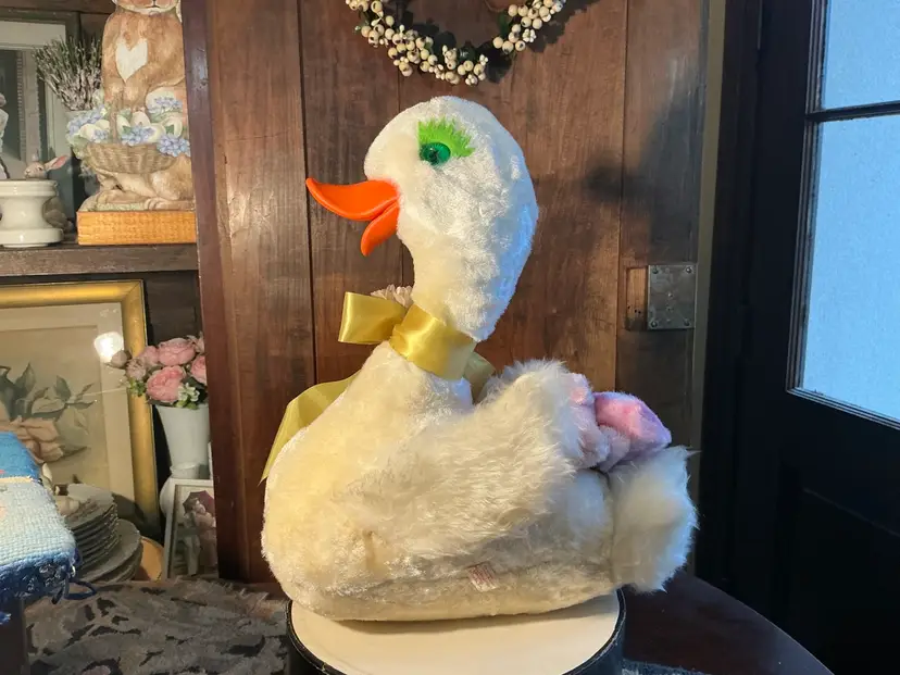 This Rushton Rubber Face Swan with Baby is a part of the Rushton Company’s Star Creation line, created in the 1950’s through the 1960’s. She has a soft plush Cotton Body, a Rubber Beak and plastic eyes.