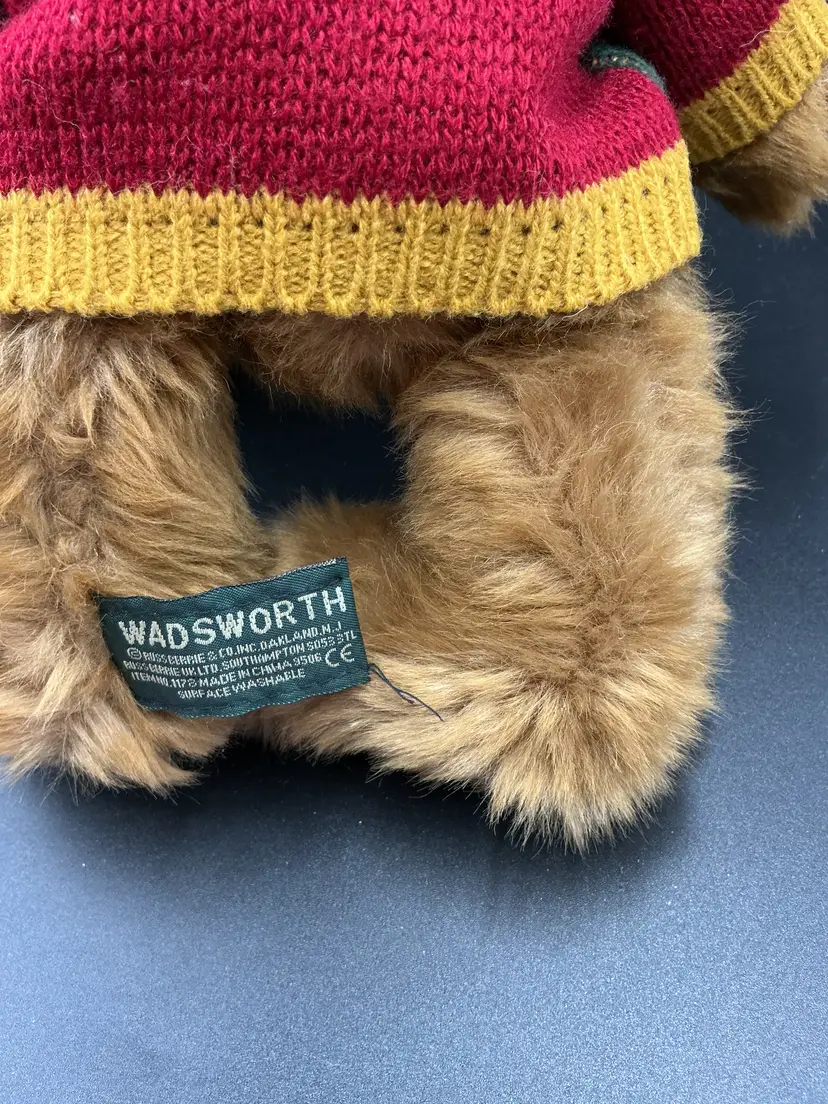 Russ Barrie “ Wadsworth ” Sweater wearing Teddy Bear. Retired.