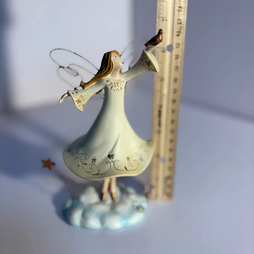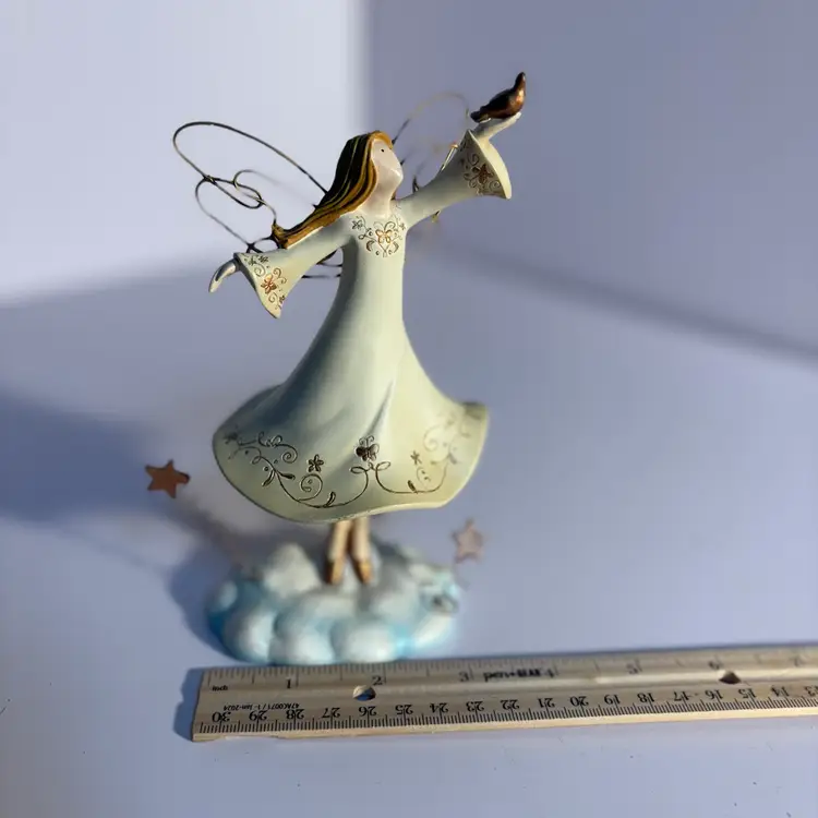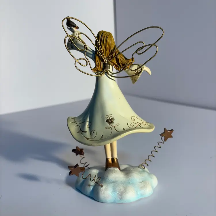 RUSS BERRIE "SPIRIT of the ANGELS" Bobble Dancing Girl w/Dove, Metal Wire Wings