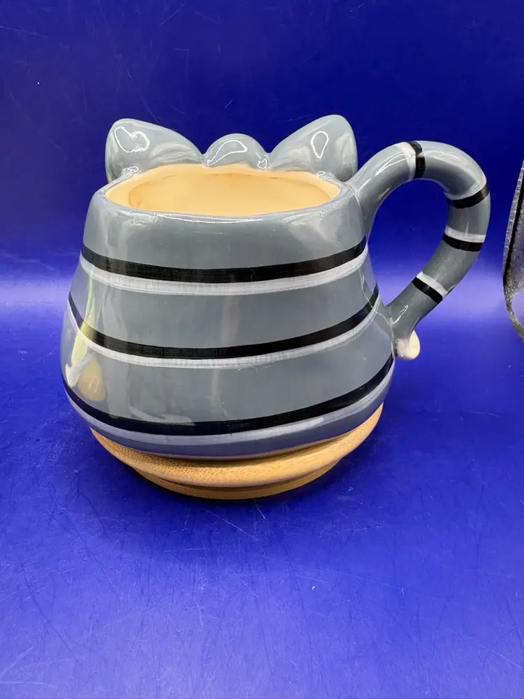 Russ Berrie 3D Grey Tabby Mug From ‘Alley Katz’ collection Signed by Douglas Holds approximately 10 fl oz Features 3D cat face relief with tail as handle Measures 3 1/2 inches tall with mouth opening of 3 inches No chips or cracks. Great condition