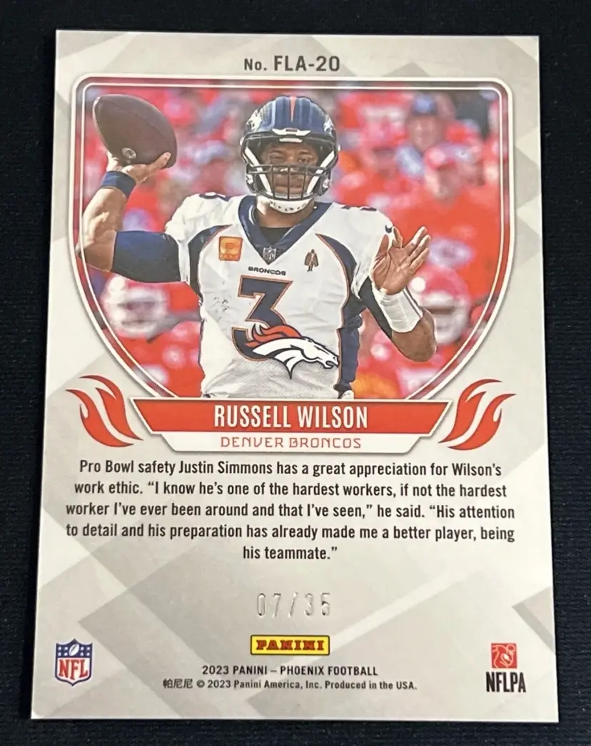 Russell Wilson 2023 Phoenix Purple Flame Throwers 07/35 #FLA-20 Denver Broncos