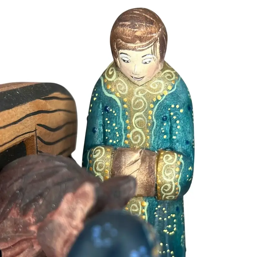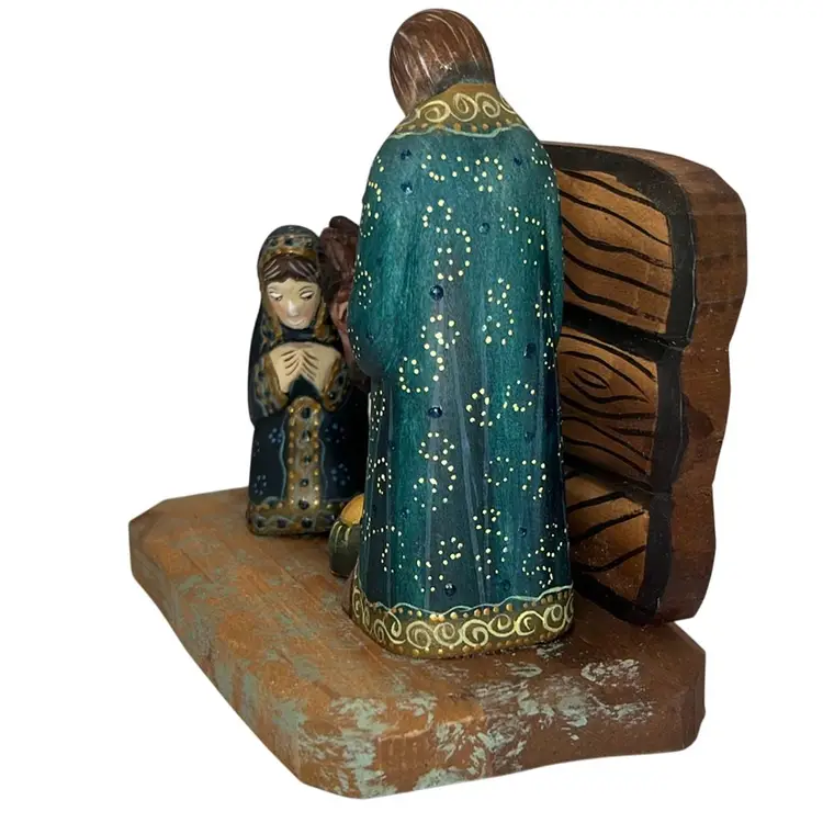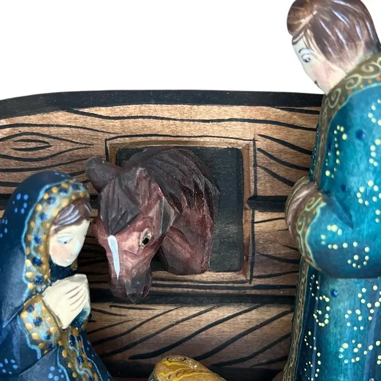 Russian hand painted signed wood Nativity 4.5” Tall x 5.75” Wide