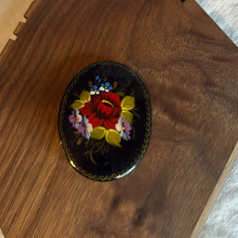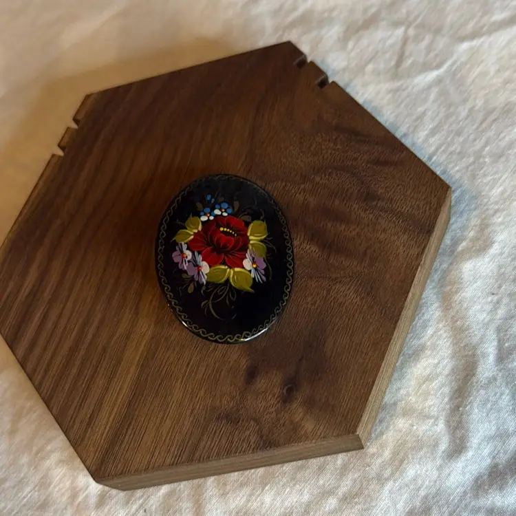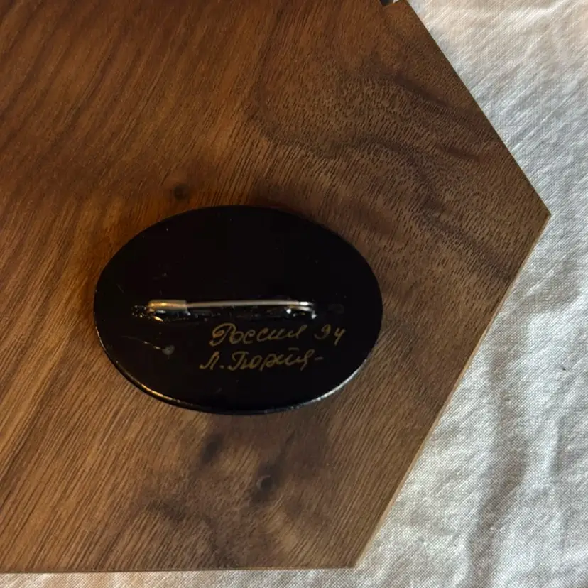 Russian Lacquer Painted Brooch. 2”.