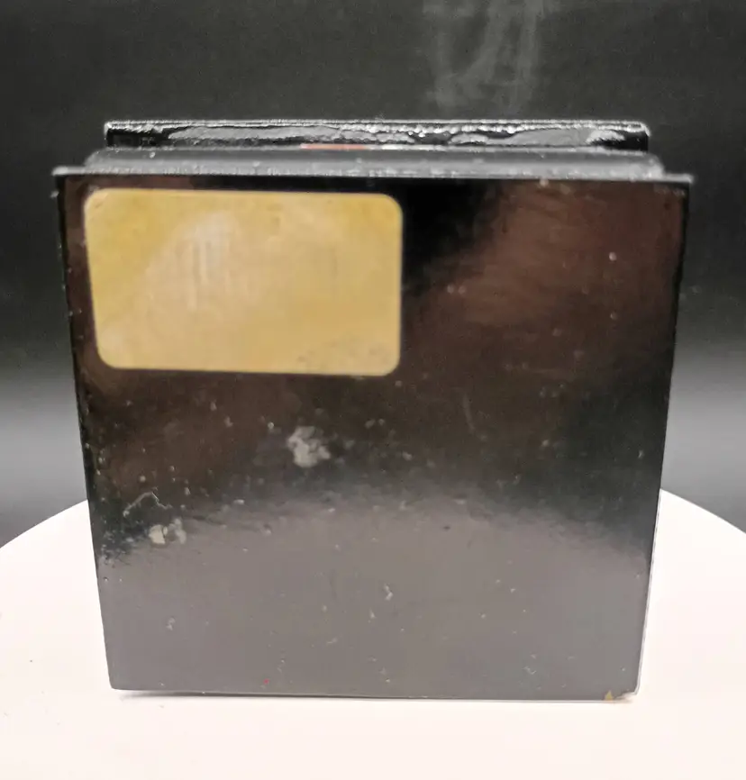 Approx. Measurements: 2 1/2 inches square x 1+ inches tall excluding medallion on the top Preowned: overall wonderful condition.