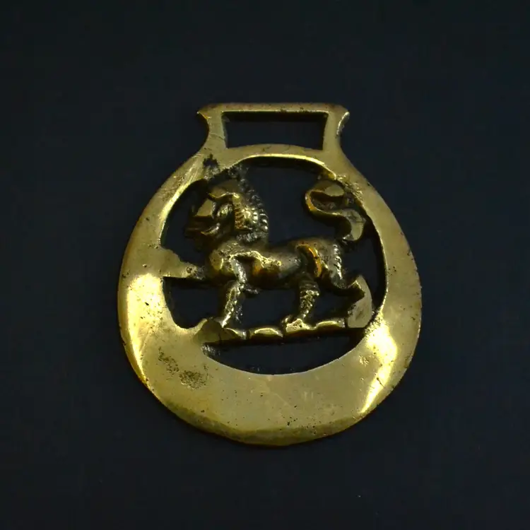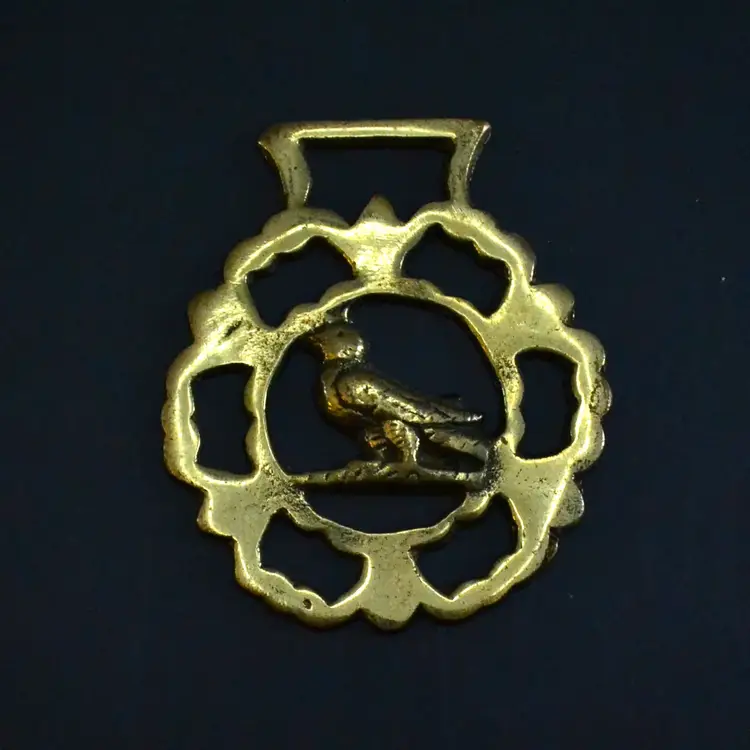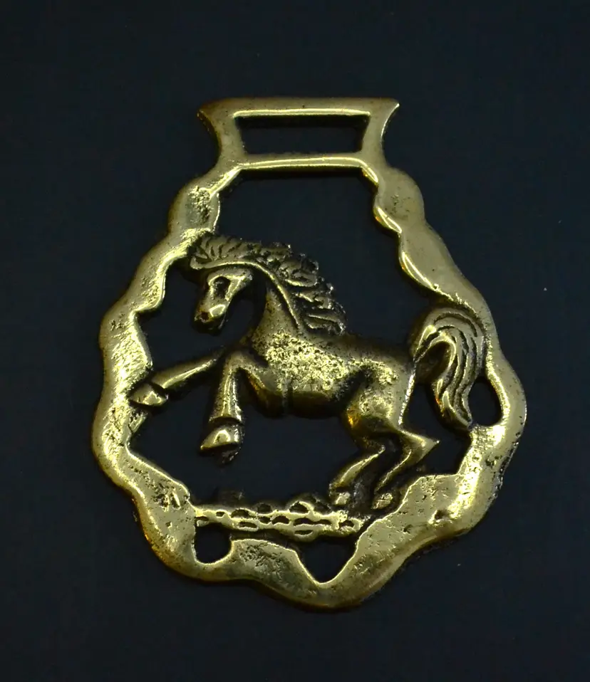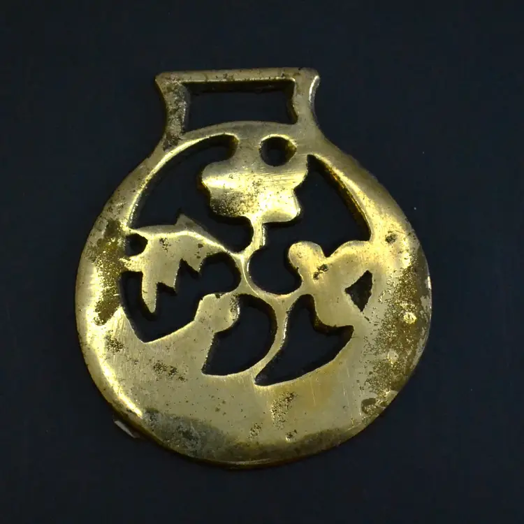 Bring rustic charm and historical character to your space with this curated set of five vintage horse brasses, traditionally used as decorative medallions on bridles and harness gear. Each brass features a distinct motif — from a masonic symbol to stylized animal forms — cast in solid brass with aged patina and surface wear that speaks to decades of use.
