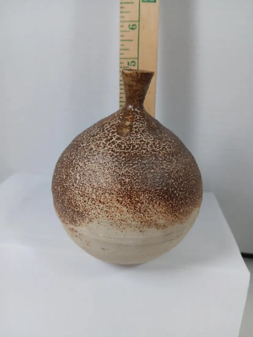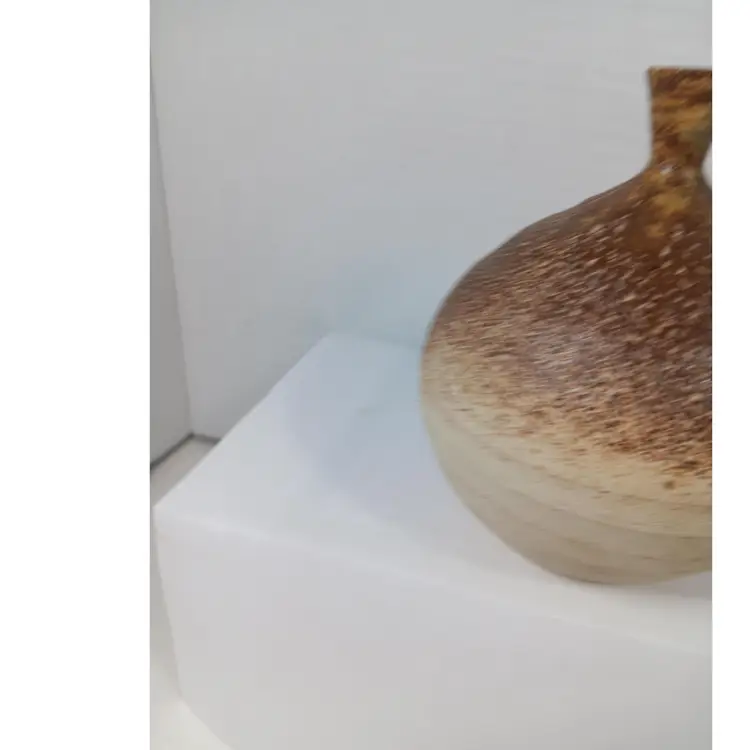 This earth-toned ceramic vase features a unique speckled glaze, perfect for adding a touch of rustic charm to any room.