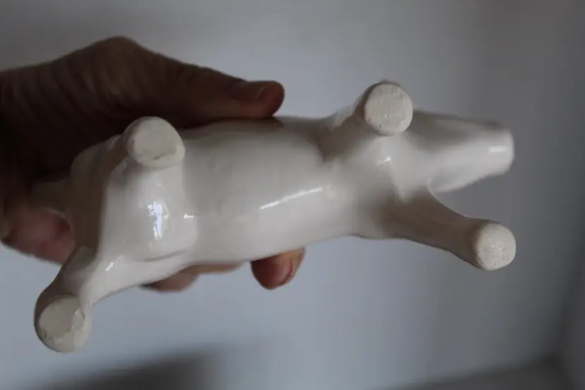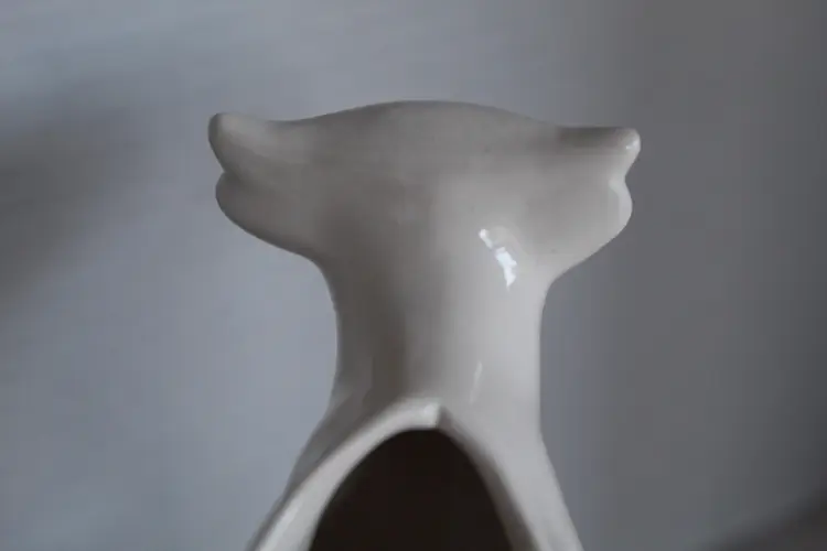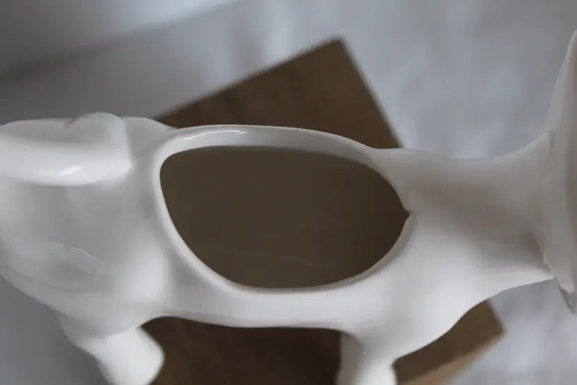 The product is a rustic country farmhouse ranch porcelain cow milk or creamer pitcher decor. Made of porcelain, this pitcher features a charming cow design, perfect for adding a touch of countryside flair to any dining table or kitchen decor. Ideal for serving cream or milk at the table, this pitcher is both functional and decorative, making it a unique addition to any farmhouse or ranch-inspired space. It measures 6 5/8 inches from tip of nose to tail.
