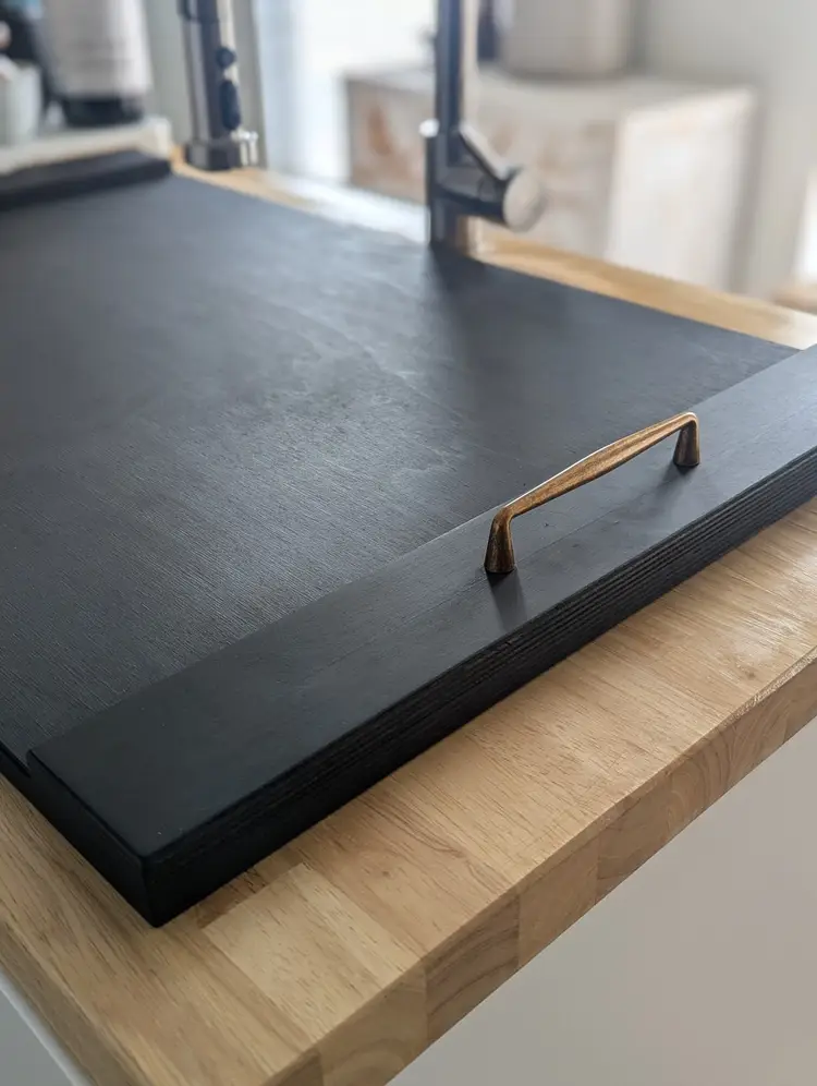 Enhance your kitchen with this handcrafted rustic sink cover. Made from solid Baltic birch hardwood, it offers extra counter space and a sleek look. Finished with a food-safe stain and oil, it's perfect for both gas and electric stoves. Personalization available upon request. Processing time is 2-3 days. Free shipping in the US.