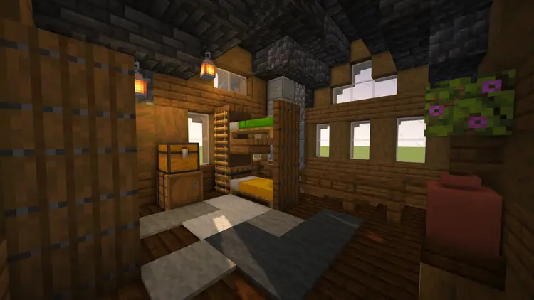 Key feature(s): • FULL INTERIOR with bunk beds, balcony, kitchen, living room, fireplace • Massive front porch spanning 3 sides • Stacked log wall effect with spruce stairs and stripped logs • Back porch with barbeque • Stone chimney