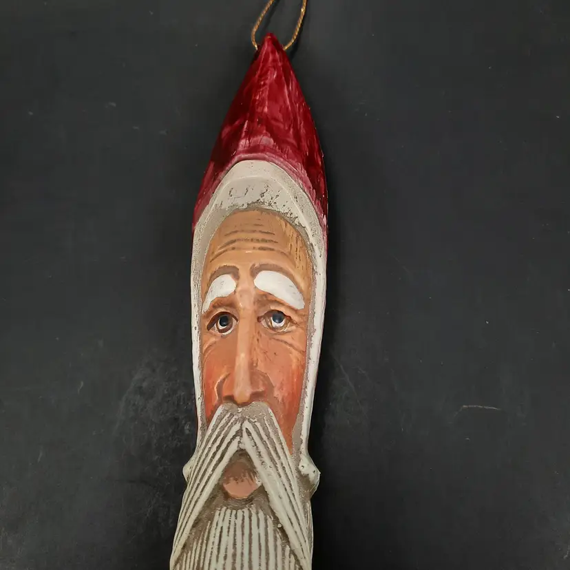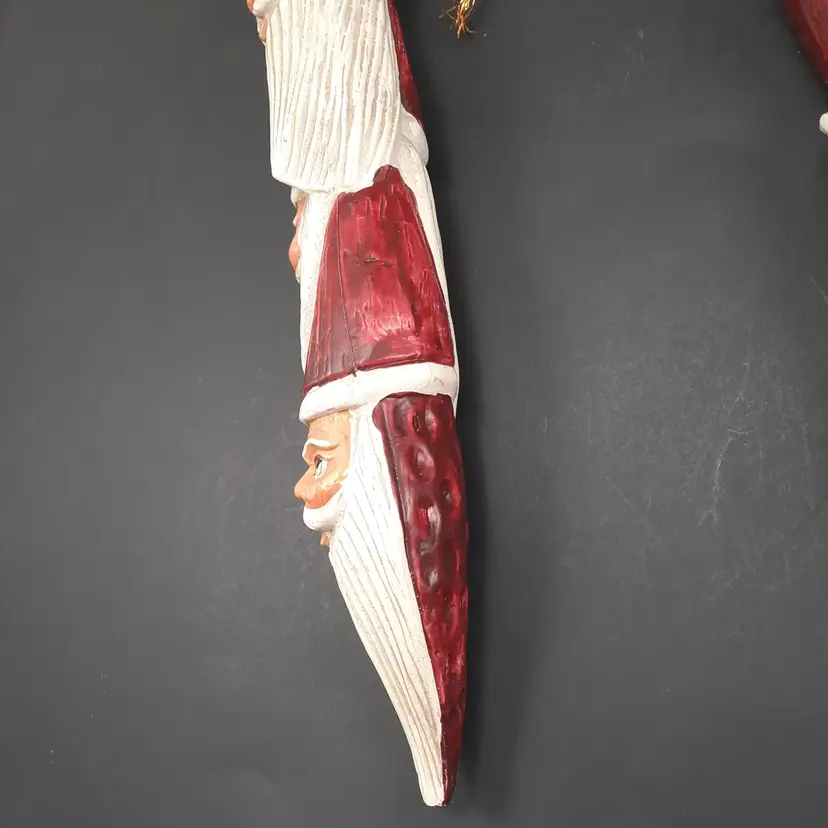 3 face Santa is 10 1/2"L and other is 9"L, great condition