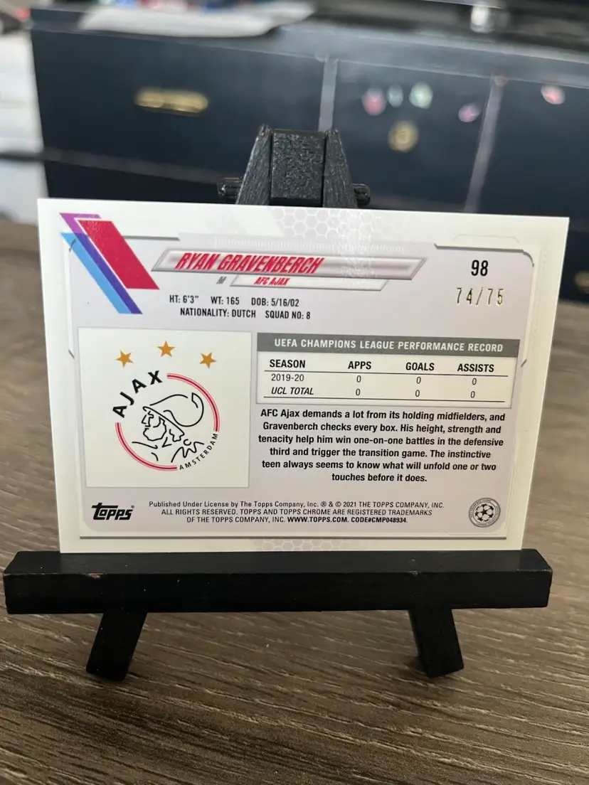 Ryan Gravenberch 2021 Topps Chrome UCL Steve Aoki Neon Future III Refractor RC Rookie /75 Ajax (A3)