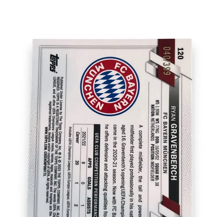 Here We Have a Ryan Gravenberch Neon Green X-Fractor 40/399 2023 Topps Chrome UEFA