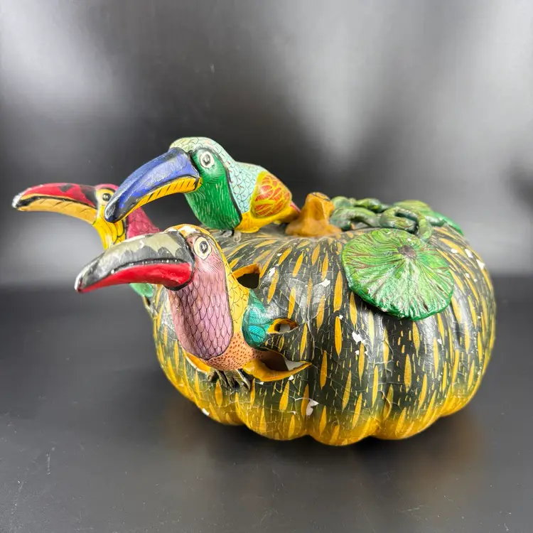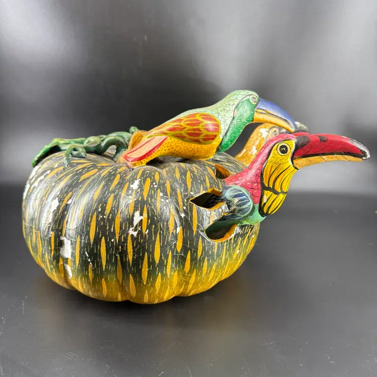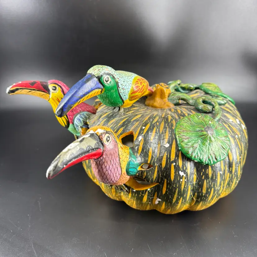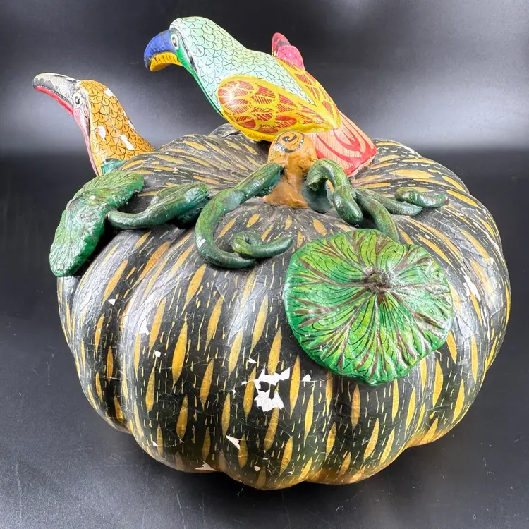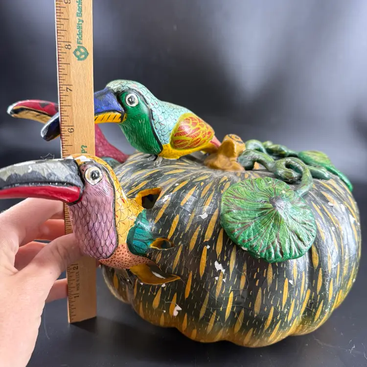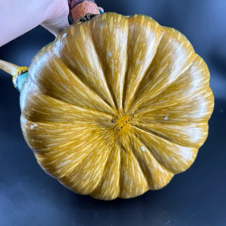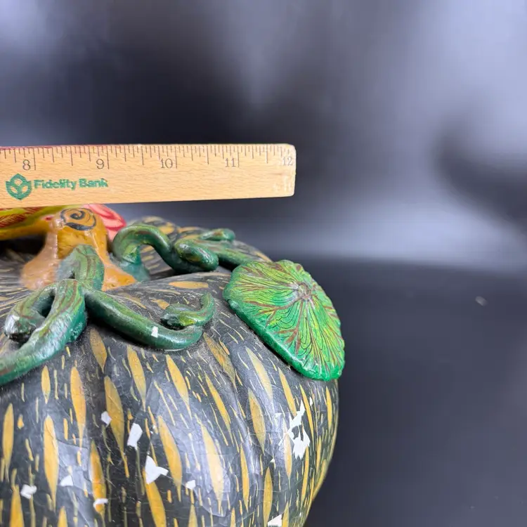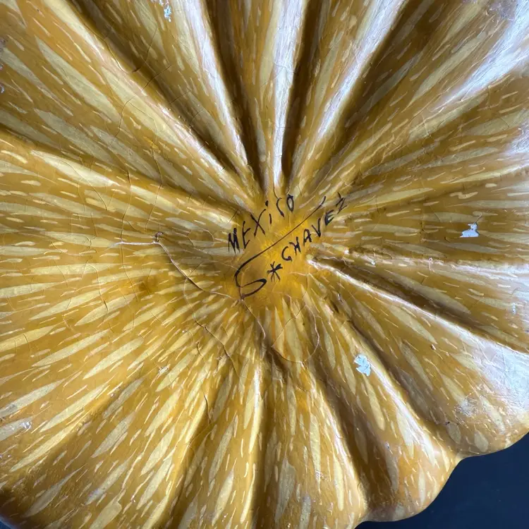 This piece is signed by the artist. There is some chipping to the paint as shown. It measures approximately 12” long and 7” tall.