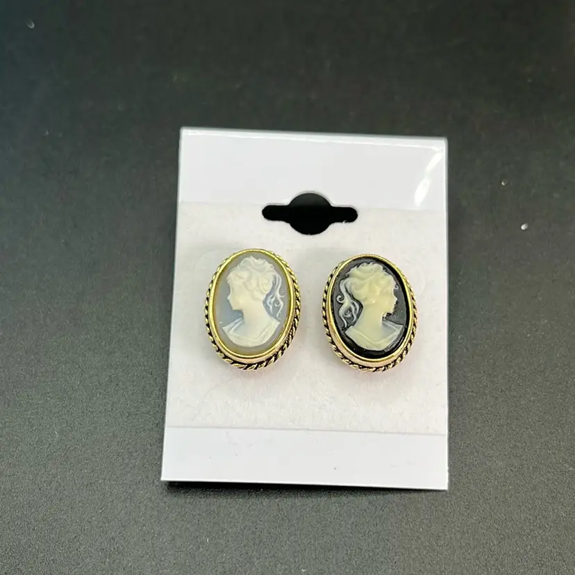 S. Lind HGE Lindenwold Cameo Earrings, Pierced 3/4โ€ Long