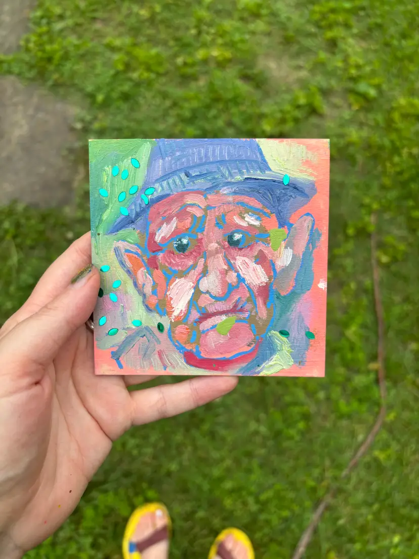 An original Acrylic and oil painting on wood. This piece measures 4 inches by 4 inches.