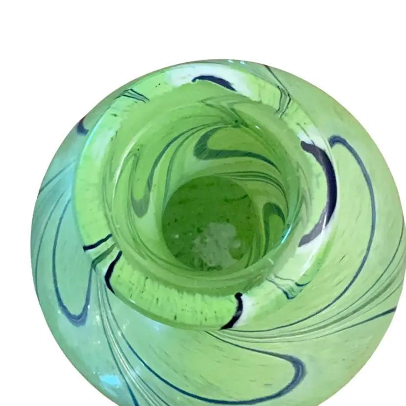 Beautiful green with purple and white swirled vase. Use as a flower vase instead of its original purpose.