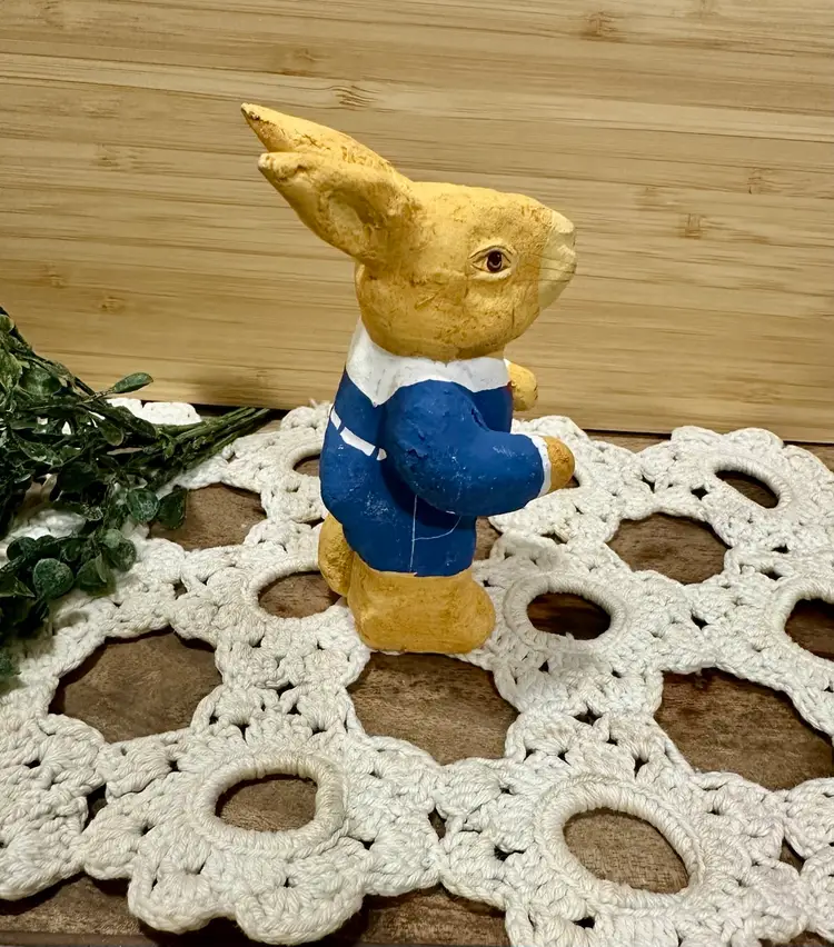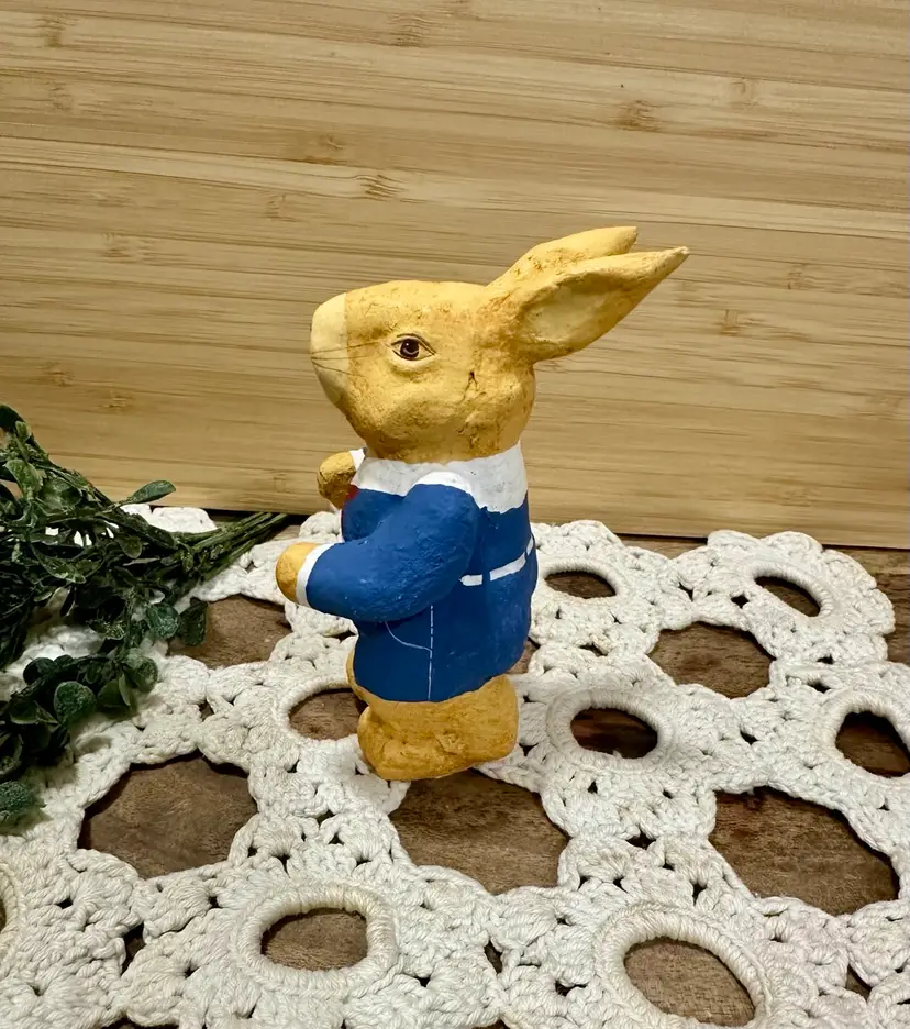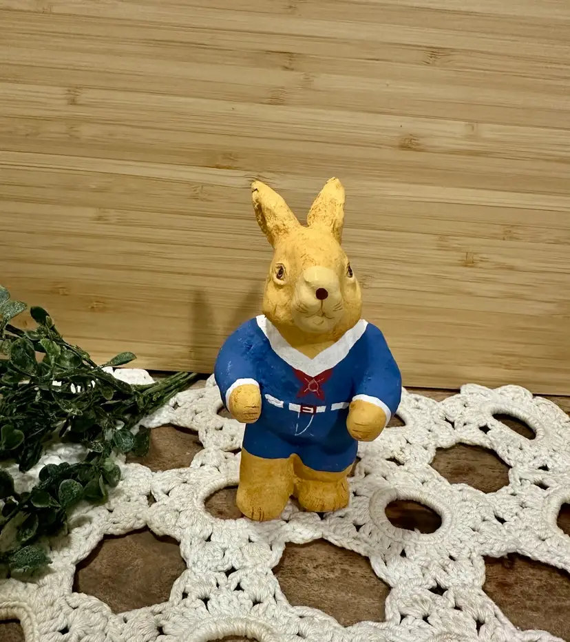 Approx 3” Tall paper mache bunny. Marked Philippines