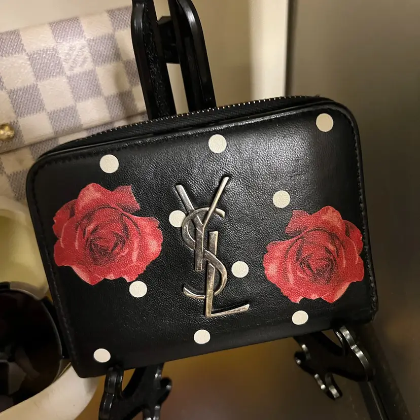 Rose polka dot canvas with silver hardware! So Beautiful! Minor scratch on canvas.