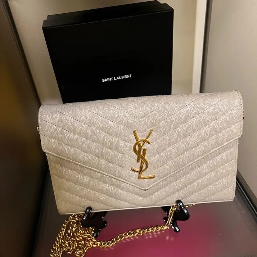 Beautiful medium sized envelope. No tarnishing, little rub on tip of flap and on right side of flap. Chevron caviar leather!
