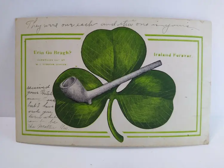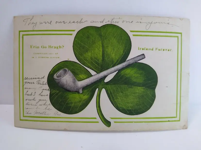 Size: Standard (5.5 x 3.5 in) Country/Region of Manufacture: Unknown Custom Bundle: No Material: Paper Theme: Art, Fantasy, Greetings, Holiday Type: Printed (Lithograph) Features: Undivided Back Subject: Clover Number of Items in Set: 1 Postage Condition: Yes Original/Licensed Reprint: Original Occasion: St. Patrick's Day Time Period Manufactured: 1900-1919 Unit of Sale: Single Unit Era: Pre-War (Pre-1914) Brand/Publisher: Unbranded Artist: Unknown Year Manufactured: 1907