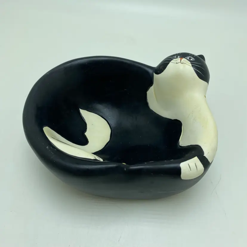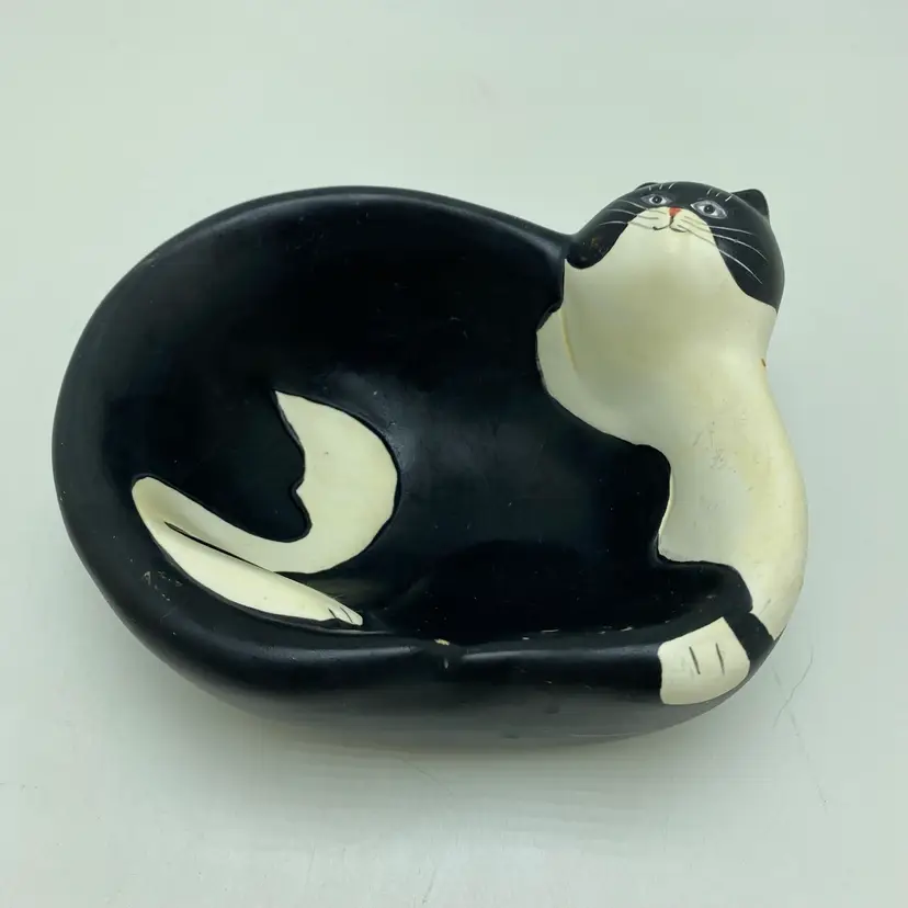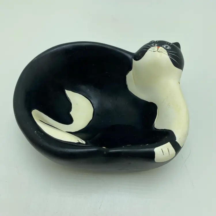 Sakura Warren Kimble tuxedo cat bowl Black & white Ceramic Width 6.5” x Length 5.5” x Height 3.5” Measurements are approximate Small paint wear
