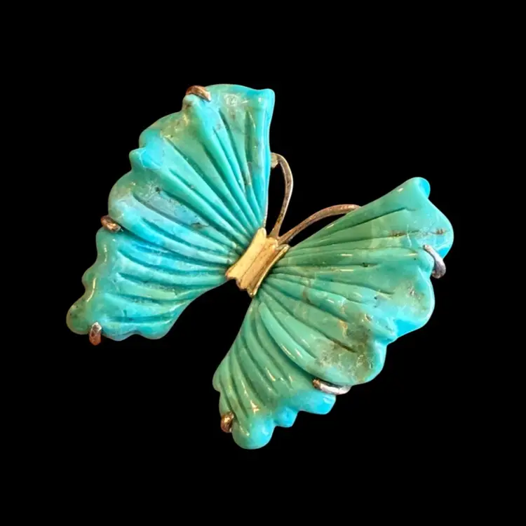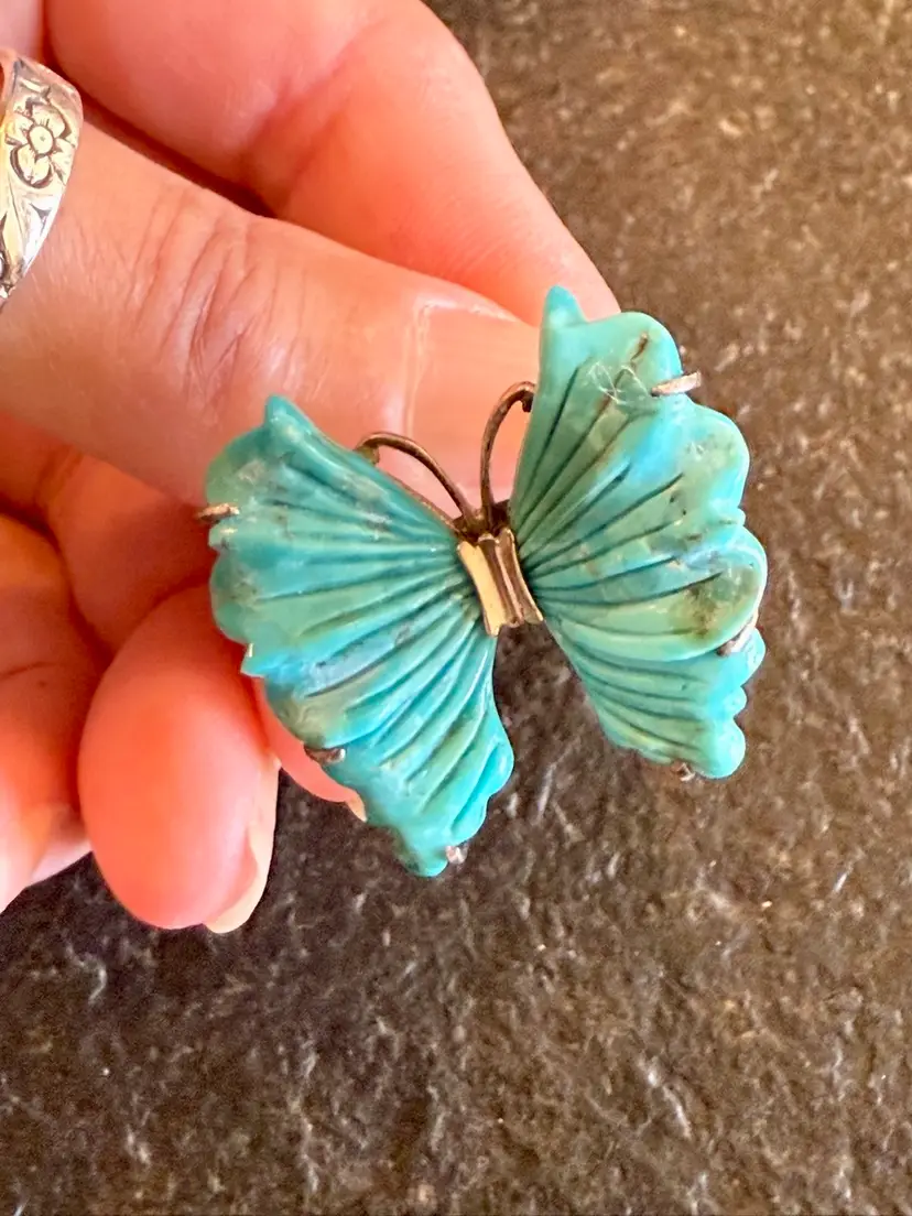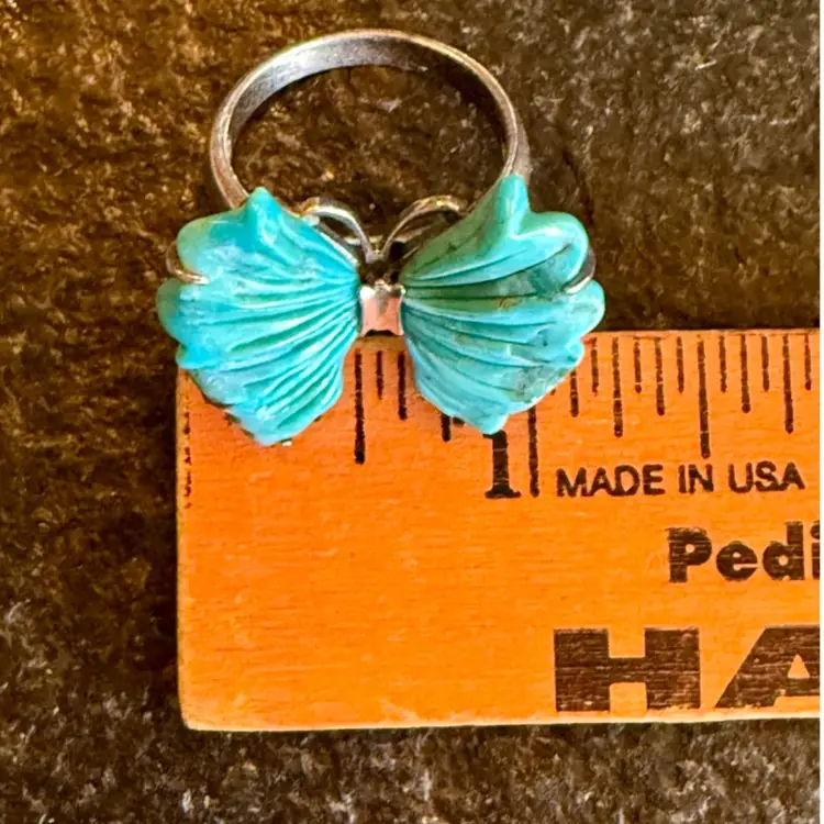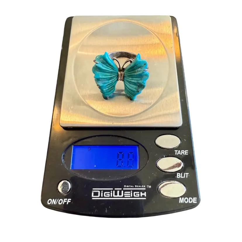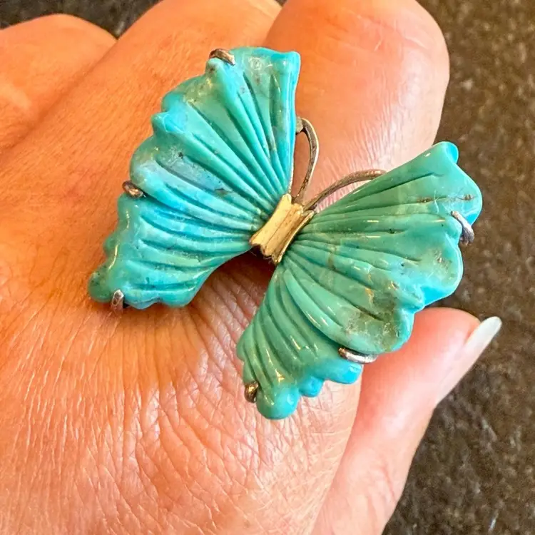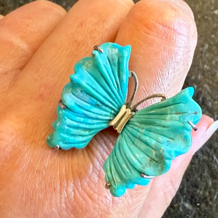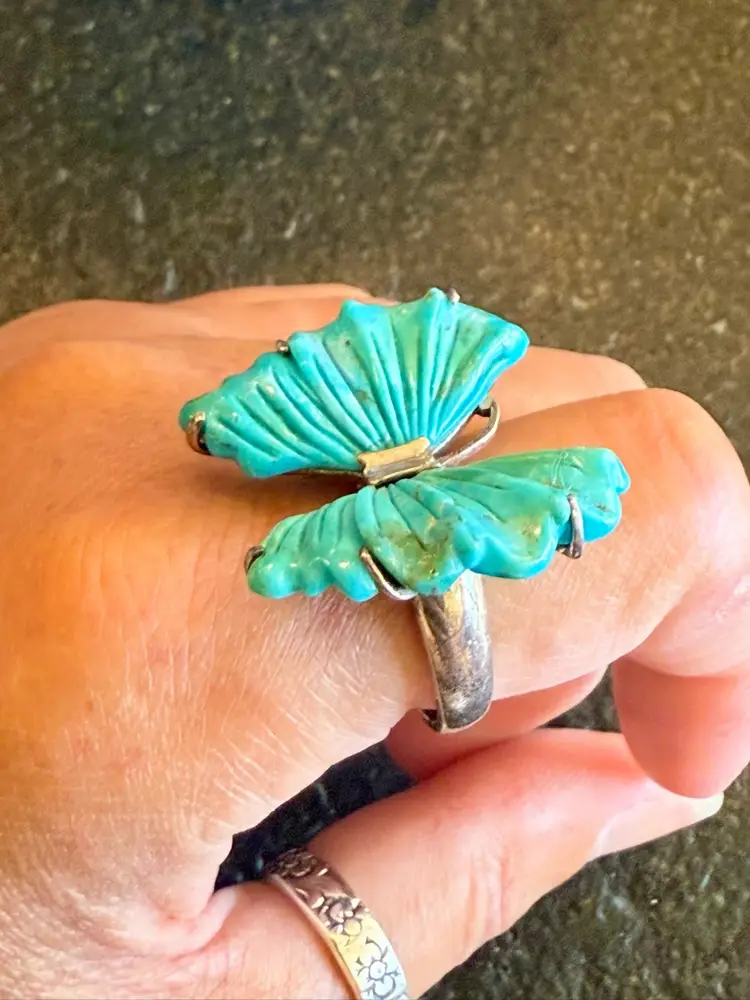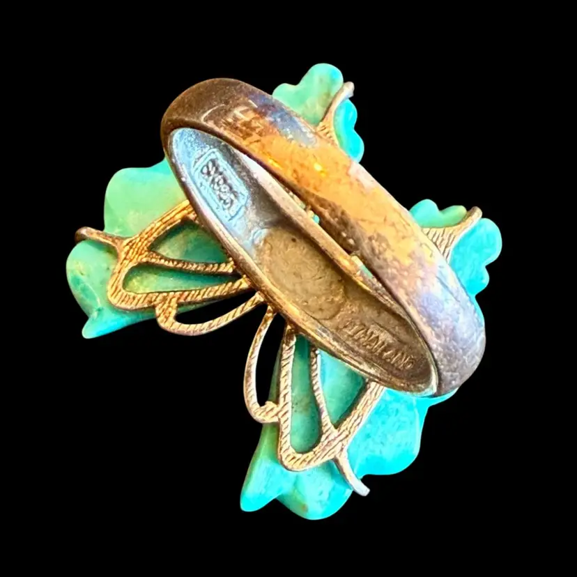 Sally C Treasures Turquoise Butterfly Sterling Silver Thailand SX Signed Ring Size 10, 8.8g