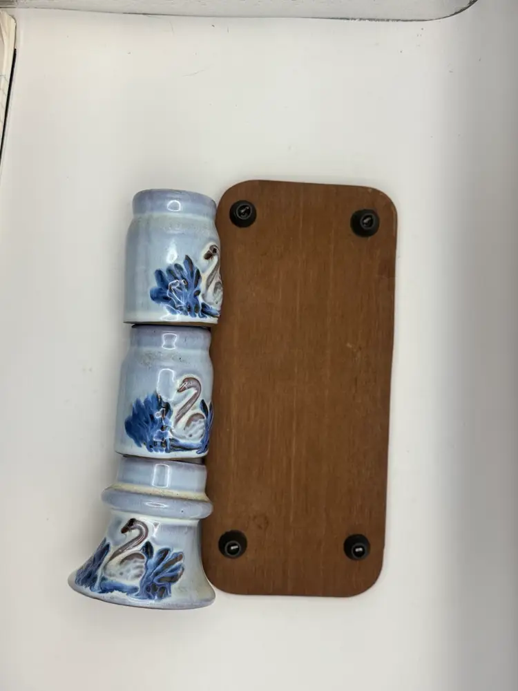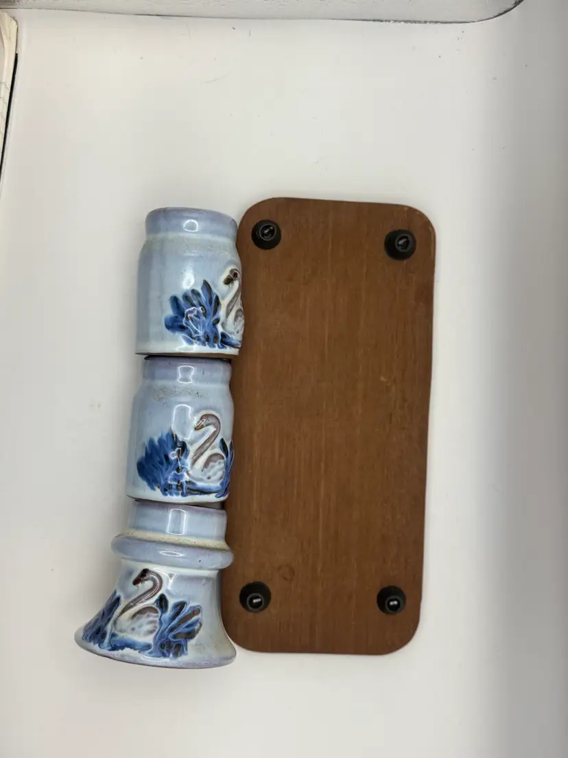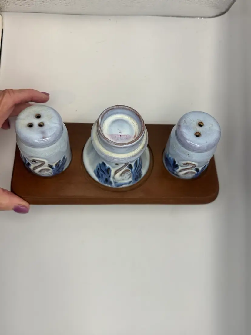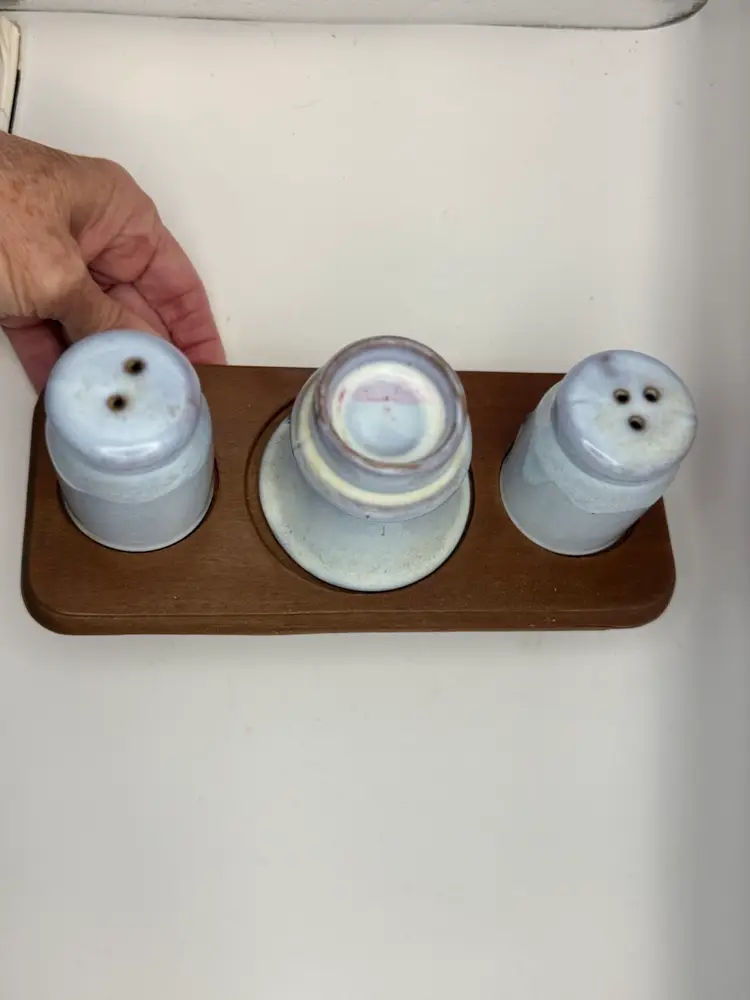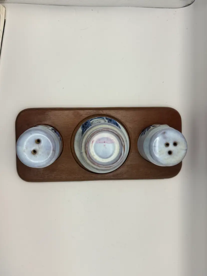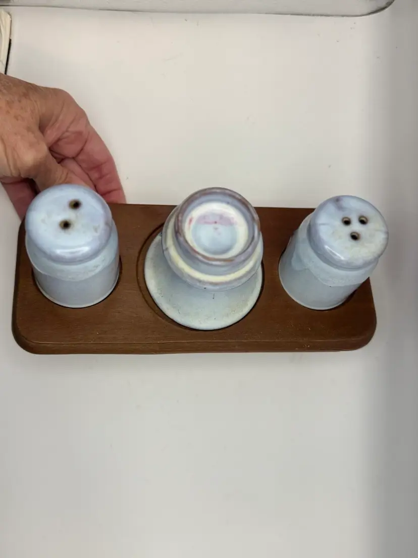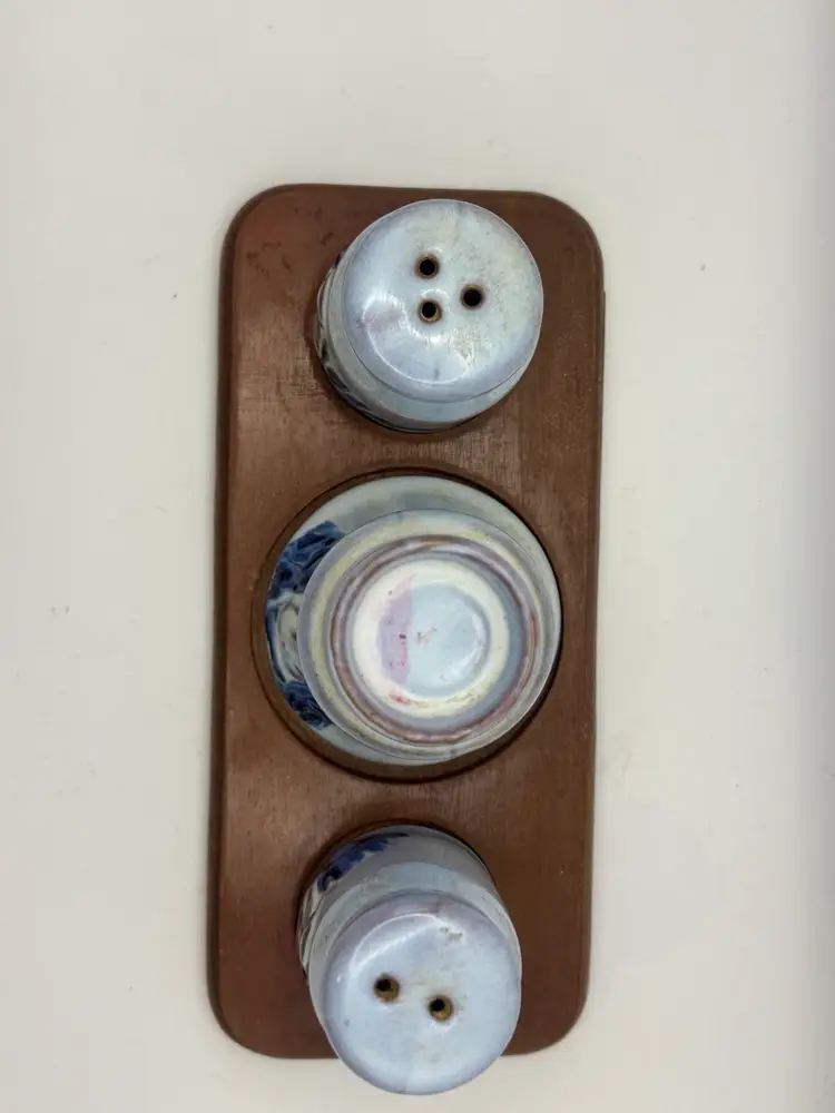 Salt And Pepper Set With Votive Candle Holder On Wood Tray 8.5”x4”