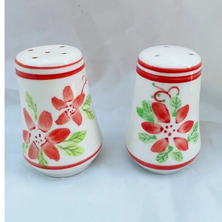 Salt and Pepper Shakers by Mayfair & Jackson - Poinsettia design. Hand painted