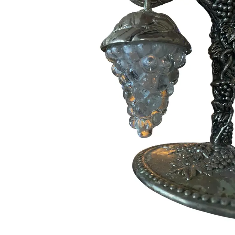 Salt and Pepper Shakers,Vintage Godinger Silverplated Embossed Grapevine Scroll Salt & Pepper Crystal Shakers
